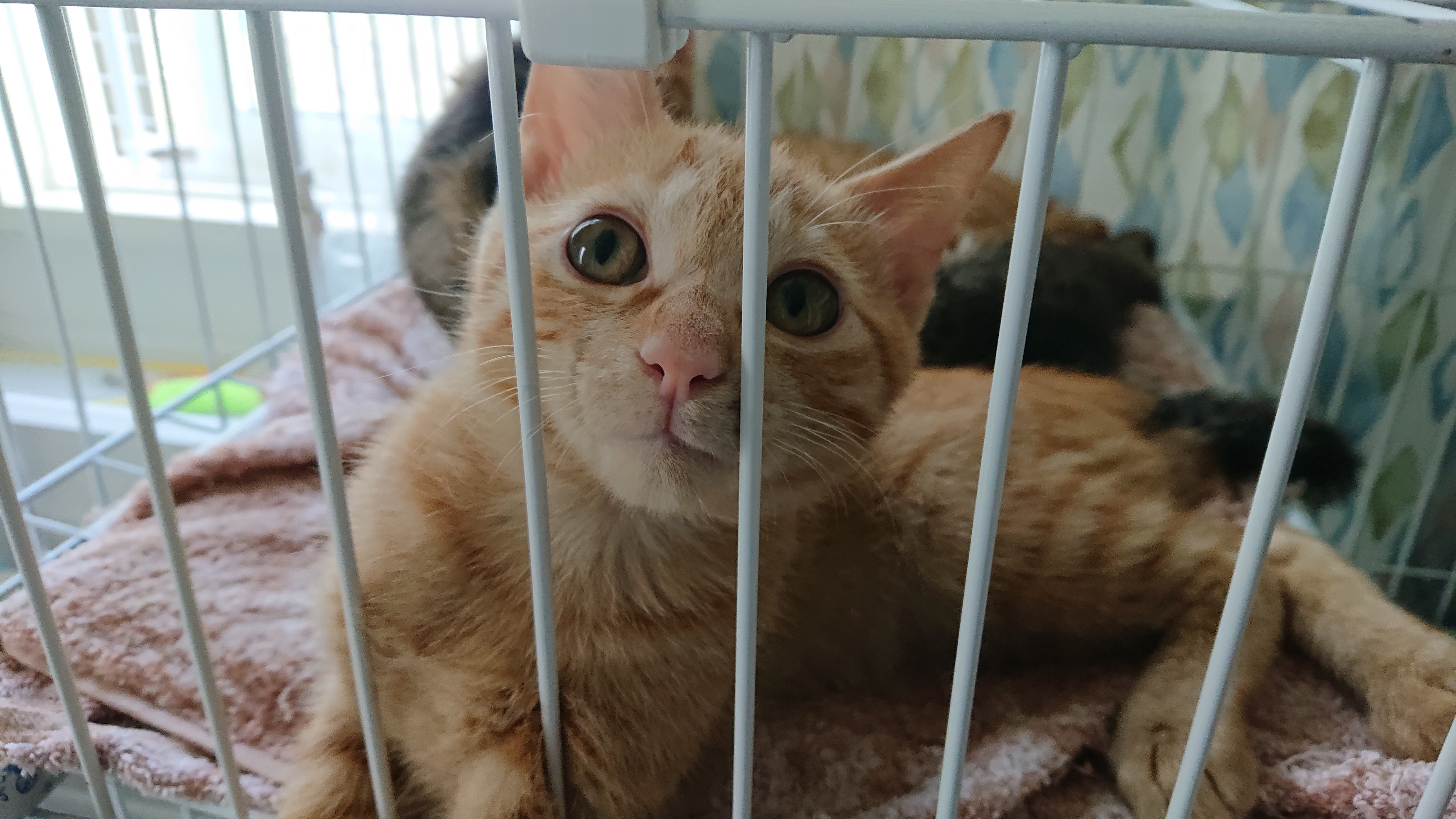 8月半ばに2回目のワクチンと去勢手術をして、譲渡会に出る予定でしたが、ワクチンが延期になったため、譲渡会は9月になります。