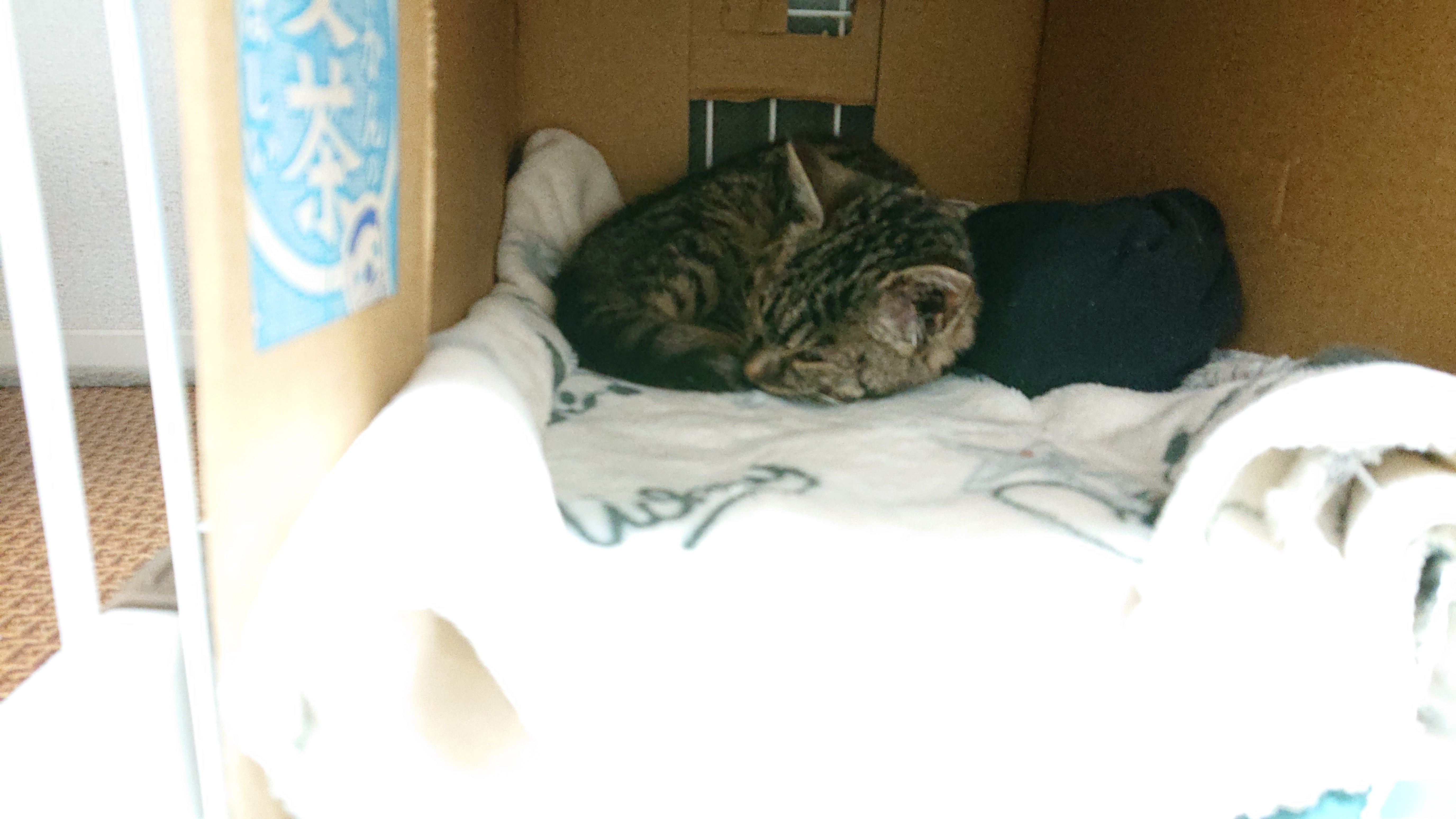 私の住む千葉県でも1/6には雪が降りました。朝晩外で過ごすなんてとんでもない!というここ最近の寒さの中、何者かによって2匹の子猫たちが遺棄されました。雪が降る前日の1/5に、保護主さんが発見・保護し、初期医療を済ませた上でお世話してくれていましたが、先住猫ちゃんが体調を崩してしまい、先ほど我が家にやってきました。