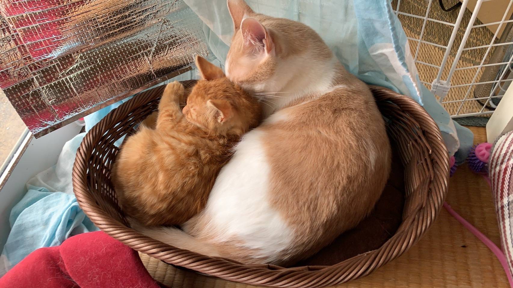 預かりさん宅でお世話になっている茶トラちゃんです。鼻水は垂らしていますが元気に過ごしています。お家の猫ちゃんとすっかり仲良くなったようで、このまま過ごせたらな……と思ってしまうところもありますが、安心して幸せに過ごせる本当のお家を探してあげないといけないですね。