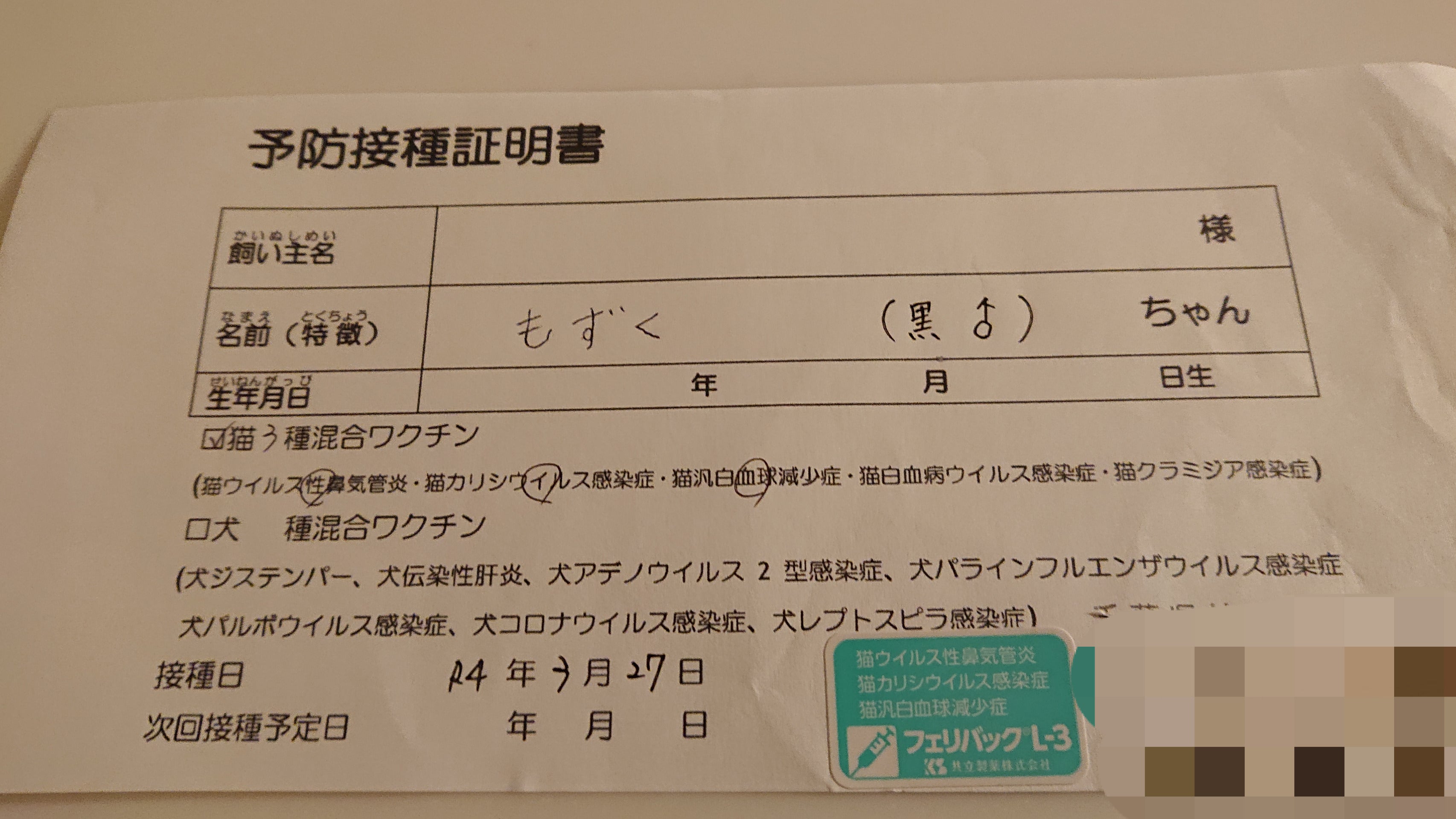 日曜日はもずくのワクチン接種でした。体調を崩すことなく過ごしてくれています。