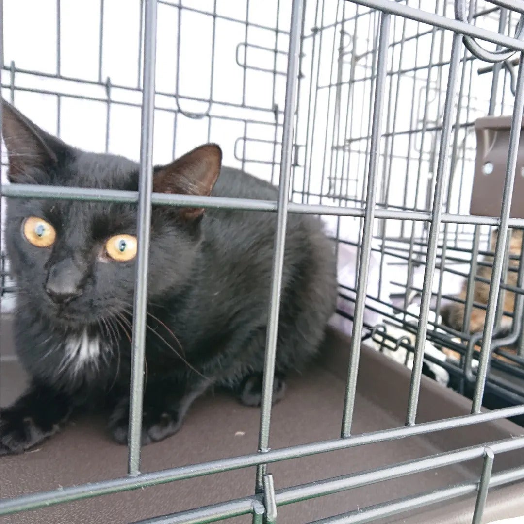 クロちゃんもリターンか悩みましたが、比較的人に慣れているため、保護して里親を探すことにしました。5ヶ月ぐらいの男の子です。頑張って育ててくれたママちゃんのためにも、クロちゃんを幸せにします。今回も友人に助けてもらいながら、協力して里親探しをしていきます。