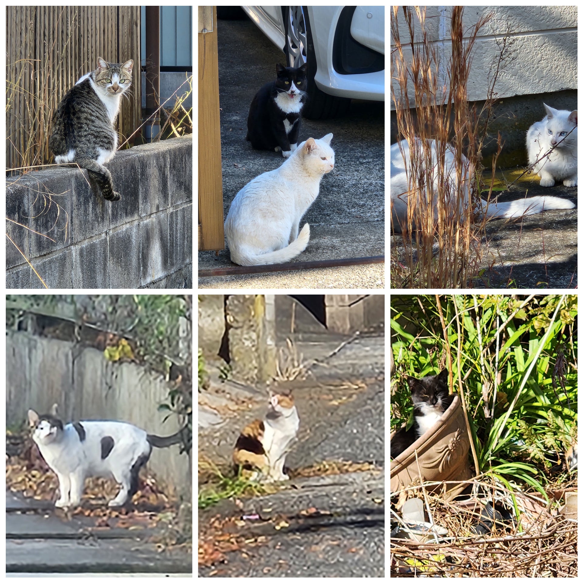 道を2本歩いただけで、11匹の猫に遭遇し、あるお宅に出入りしている6匹を合わせて17匹。