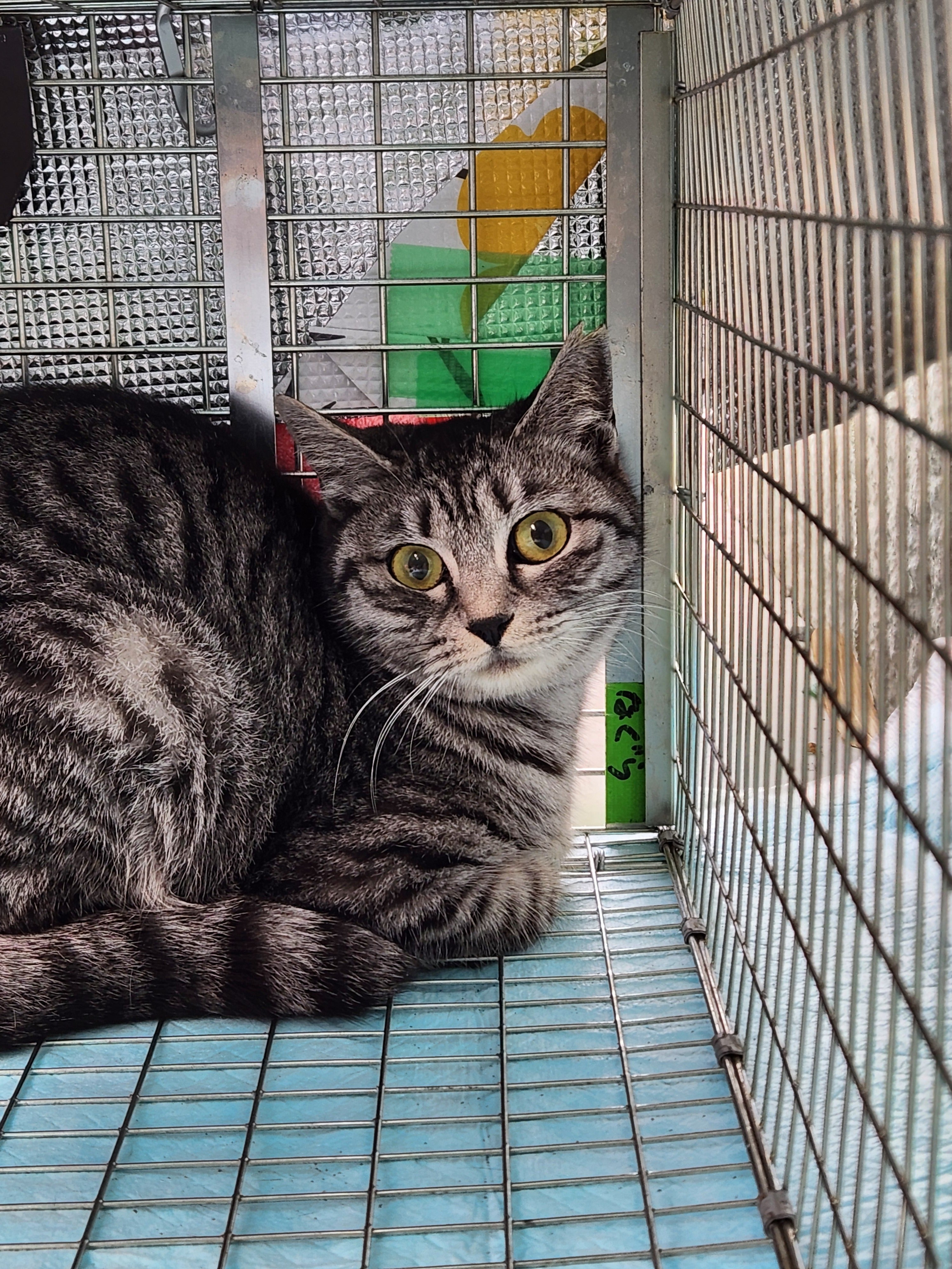かわいい顔立ちのグレーちゃん。やっぱり女の子でした。そして発情していました。まだ出産経験もないようで、お腹に命が宿る前に、そしてグレーちゃんの身体に負担をかける前に間に合って良かったです。