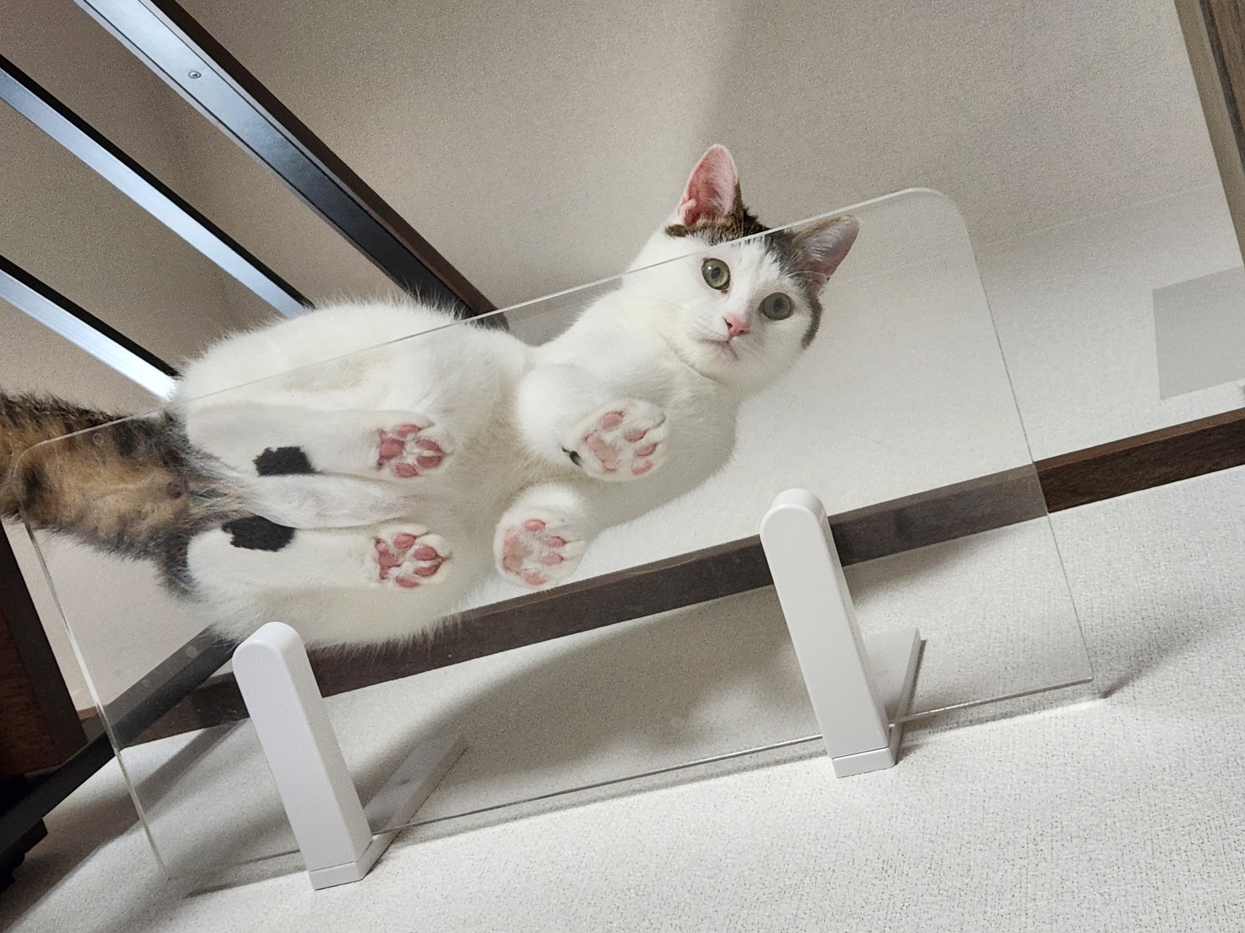 我が家の飼い猫を下から見てホッコリしたくて買ったのですが、全く見向きもしてくれず……デコちゃんが使ってくました!!