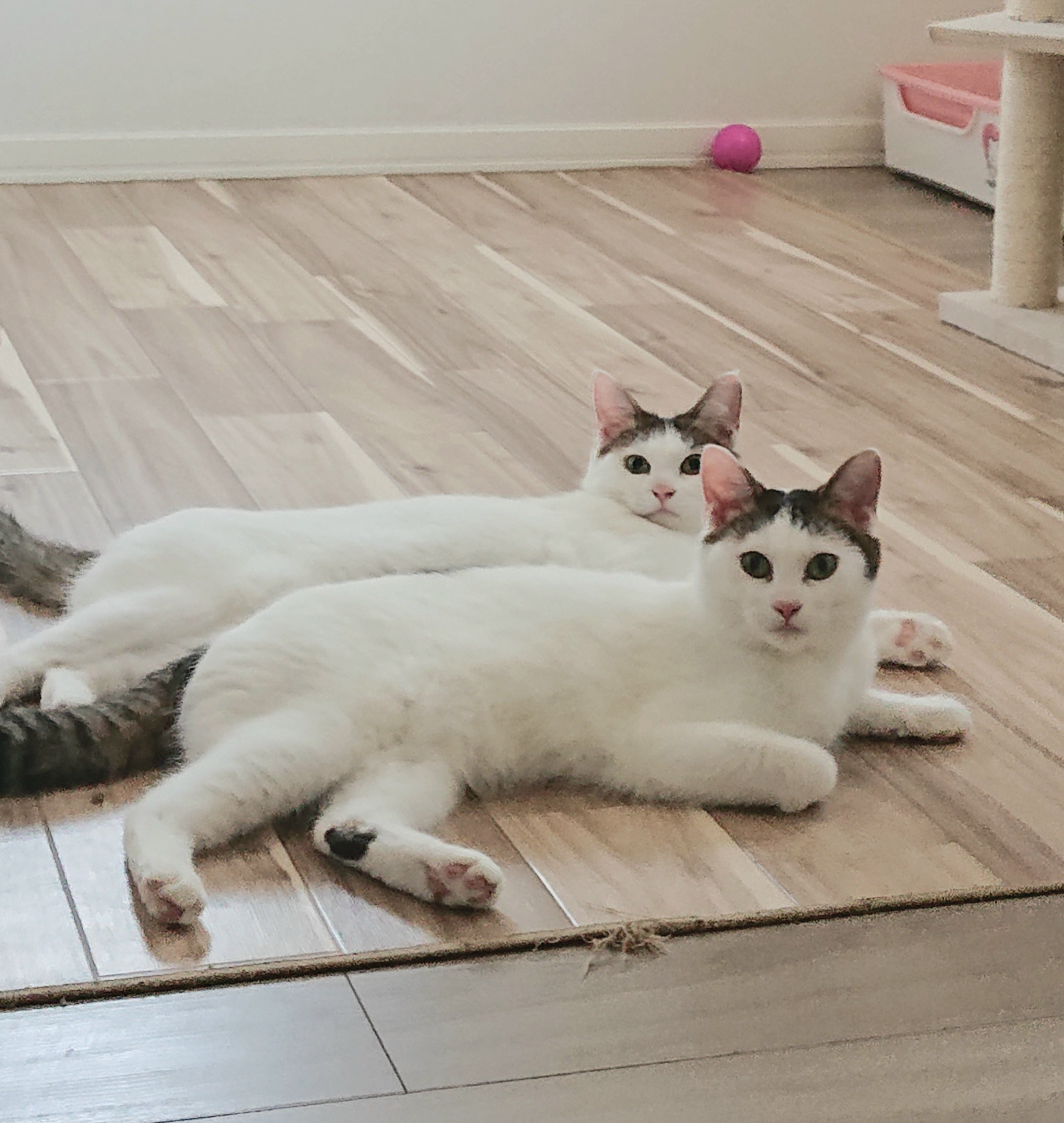 昨年末から一緒に過ごし、なかなか心を開いてくれなかったデコピンですが、今は足元について回ってくるような甘えっこ君たちです。