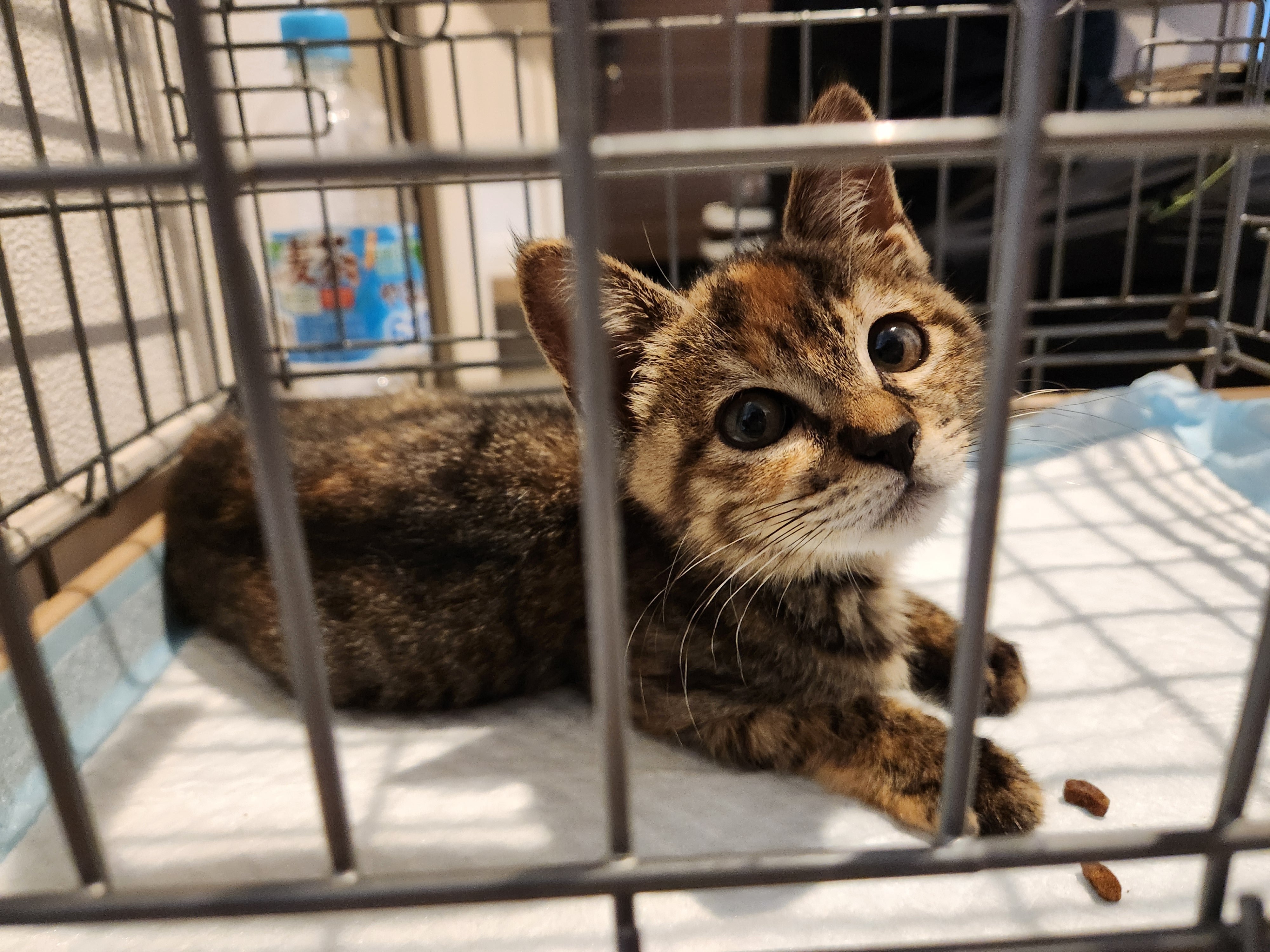 肉球も耳もきれいで、ずっと外にいたとは考えにくいです。しかもこの月齢でゴロゴロ喉を慣らして、遊んで遊んでってくるんです。人の手を知っている子ですね。