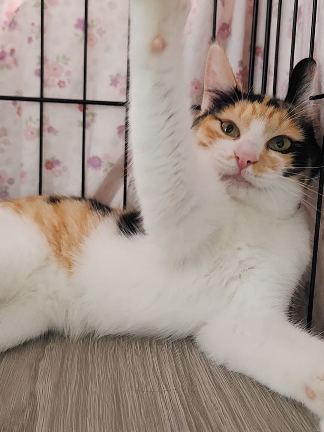 捕獲現場の新規の三毛猫ちゃん、小さいです。うちにいる子猫たちと同じか、もう少し小さいか……。
