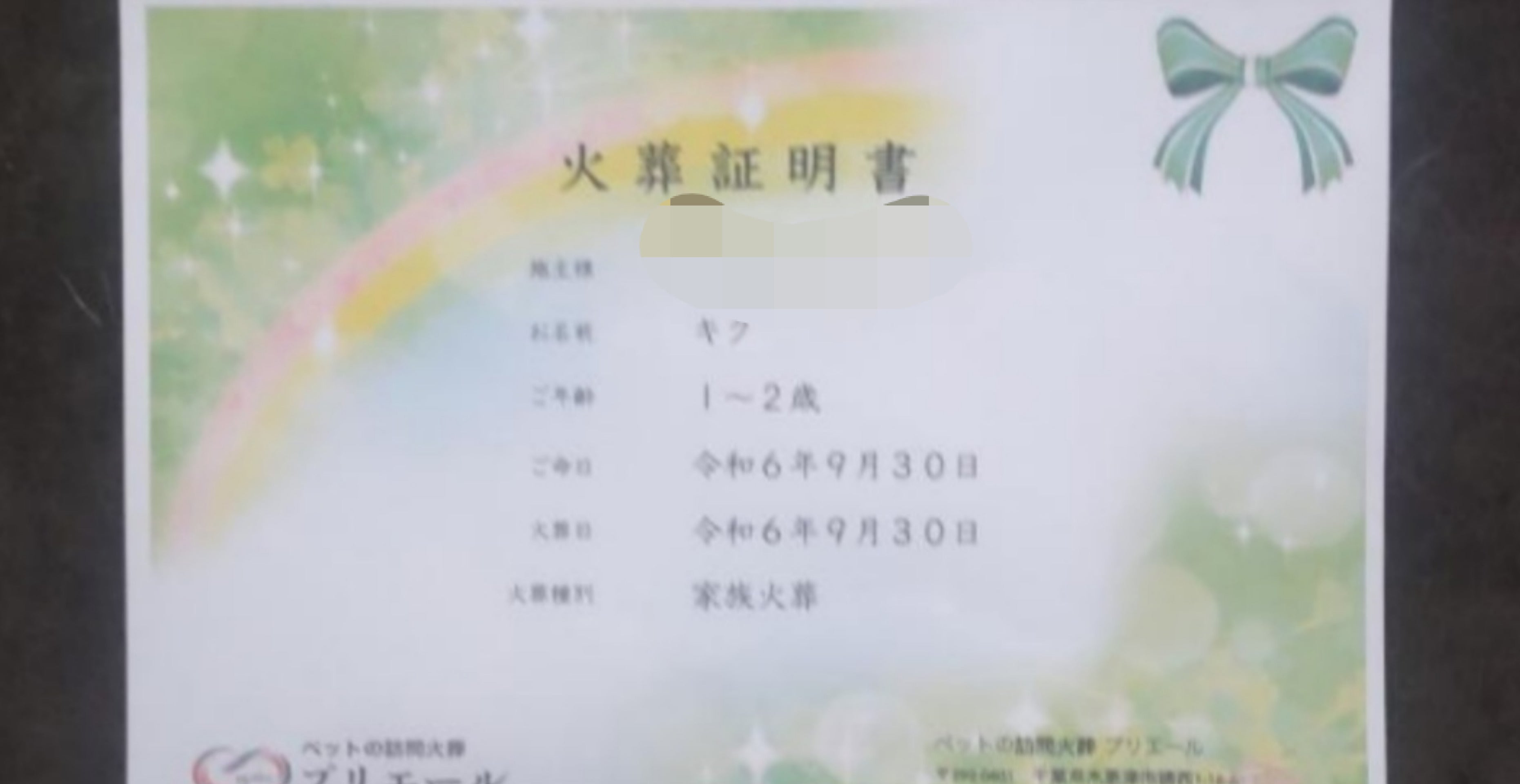 先日の朝、数日食べずにじっとしていて、もう長くないかもしれないと連絡がきました。そのすぐあと、2回大きな声で鳴いて亡くなったと連絡がきました。