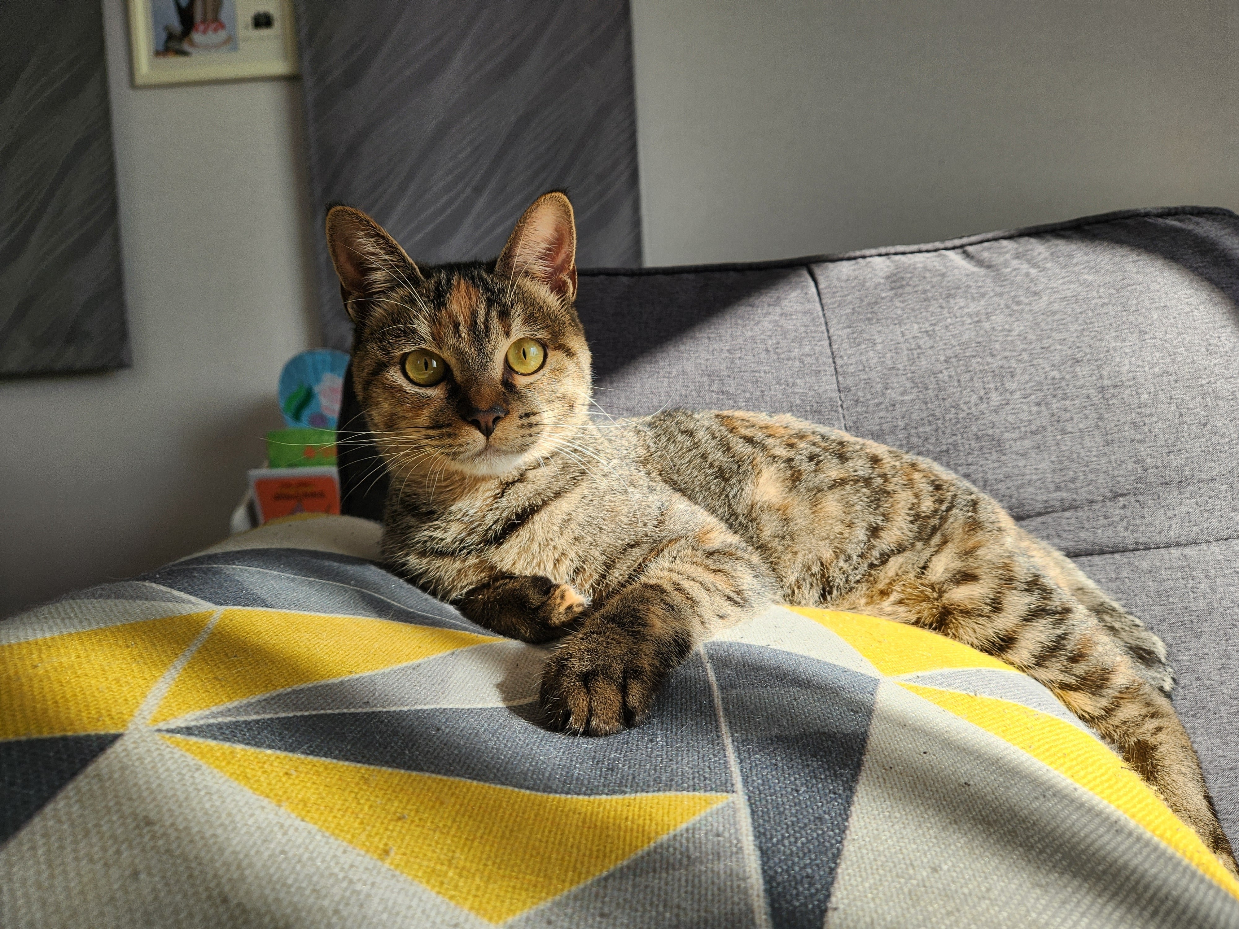 そんなタイミングで先日、ドスンと聞こえて急いで見に行くと、みーちゃんがフラフラ歩いてきました。どうやら高いところから落ちたらしく、外傷はないものの、頭やお腹を強く打っていたら一大事なのですぐ病院に行きました。幸い大事には至らず、ホッとしました。
