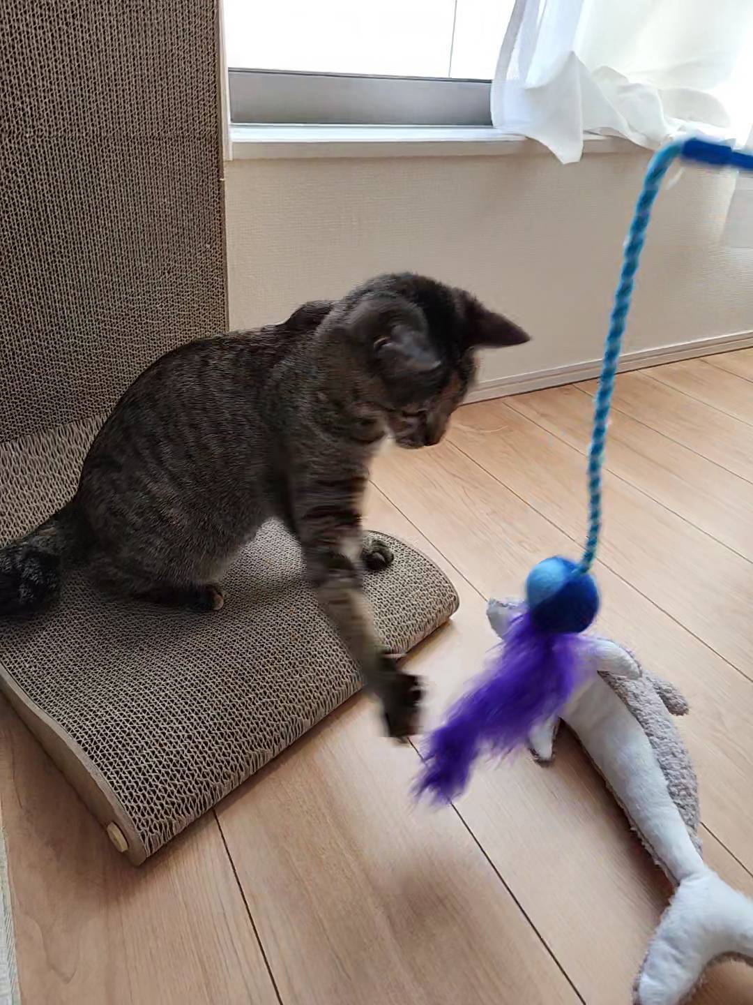 ねねちゃんは到着早々にオモチャで遊んでいました。みーちゃんは鳴きながらオロオロしていましたが、ちゅーるは食べてくれたとのことで、ねねちゃんと一緒なのできっと大丈夫ですね(*^^*)
