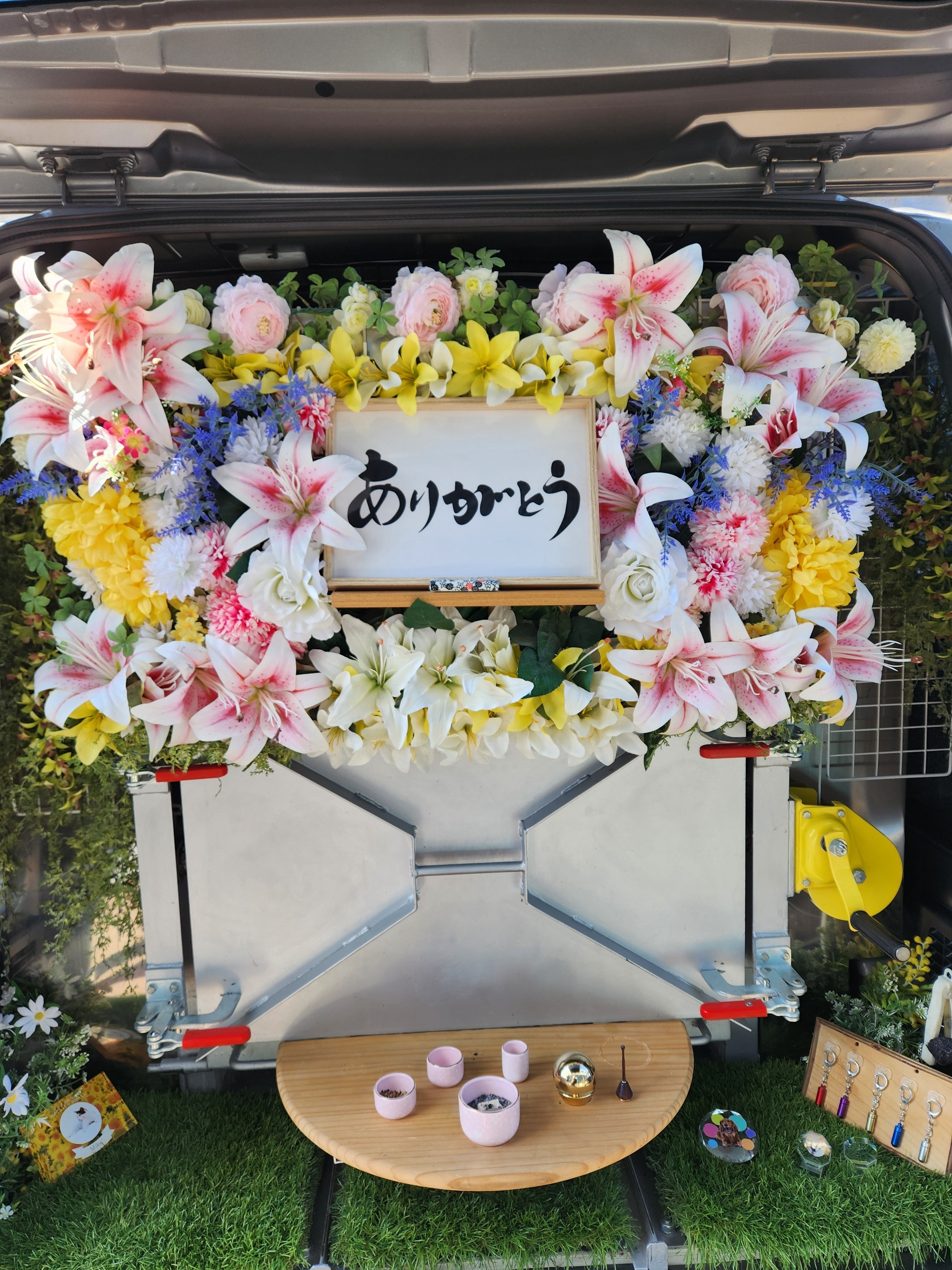 翌日、お花で囲んで旅立ちを見送りました。眠ったまま逝ったのか、本当に穏やかな表情でした。