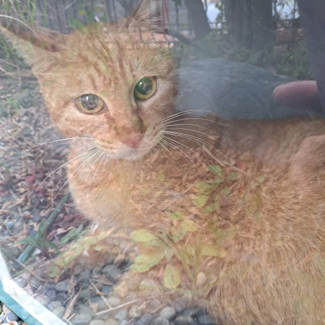 初日たまたま出会った、まだ幼い顔をした茶トラちゃんです。お腹を見ると、大きいのです……