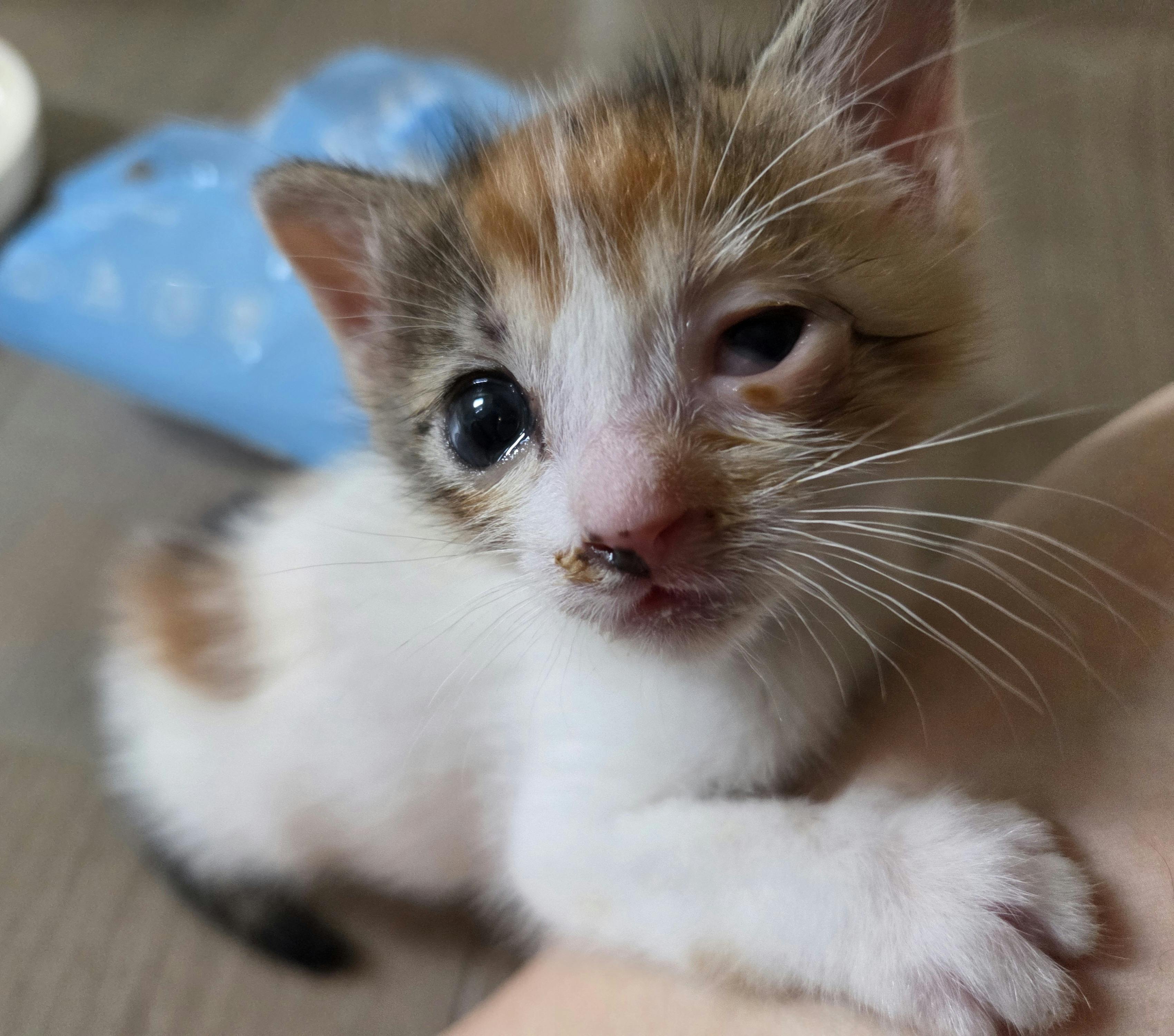 内服と点眼点鼻のお陰で、キジトラのあめは目もだいぶきれいになって、体重も増え初めました。