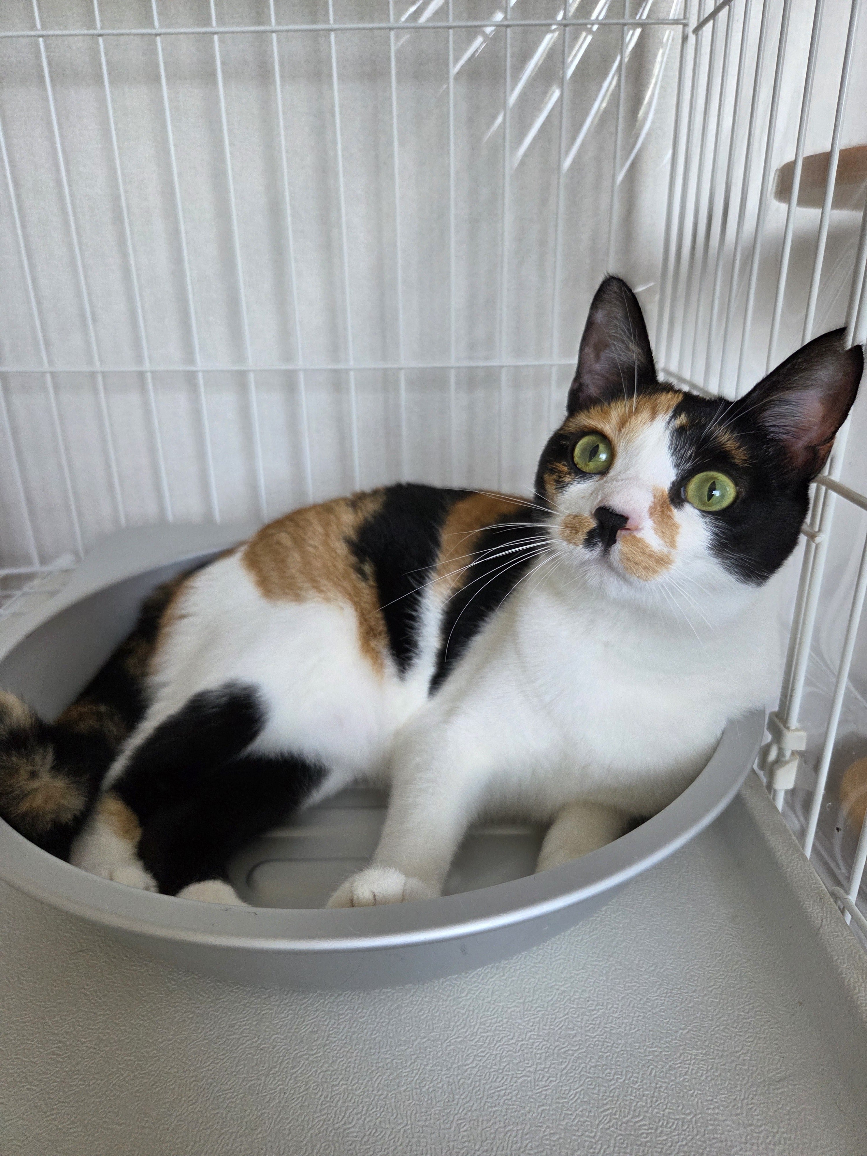 マーブルちゃんという、かわいらしい三毛猫ちゃんです。三毛猫率が高すぎます!!先日見に行ったら、ものすごいイカミミで耳がなくなっていました。