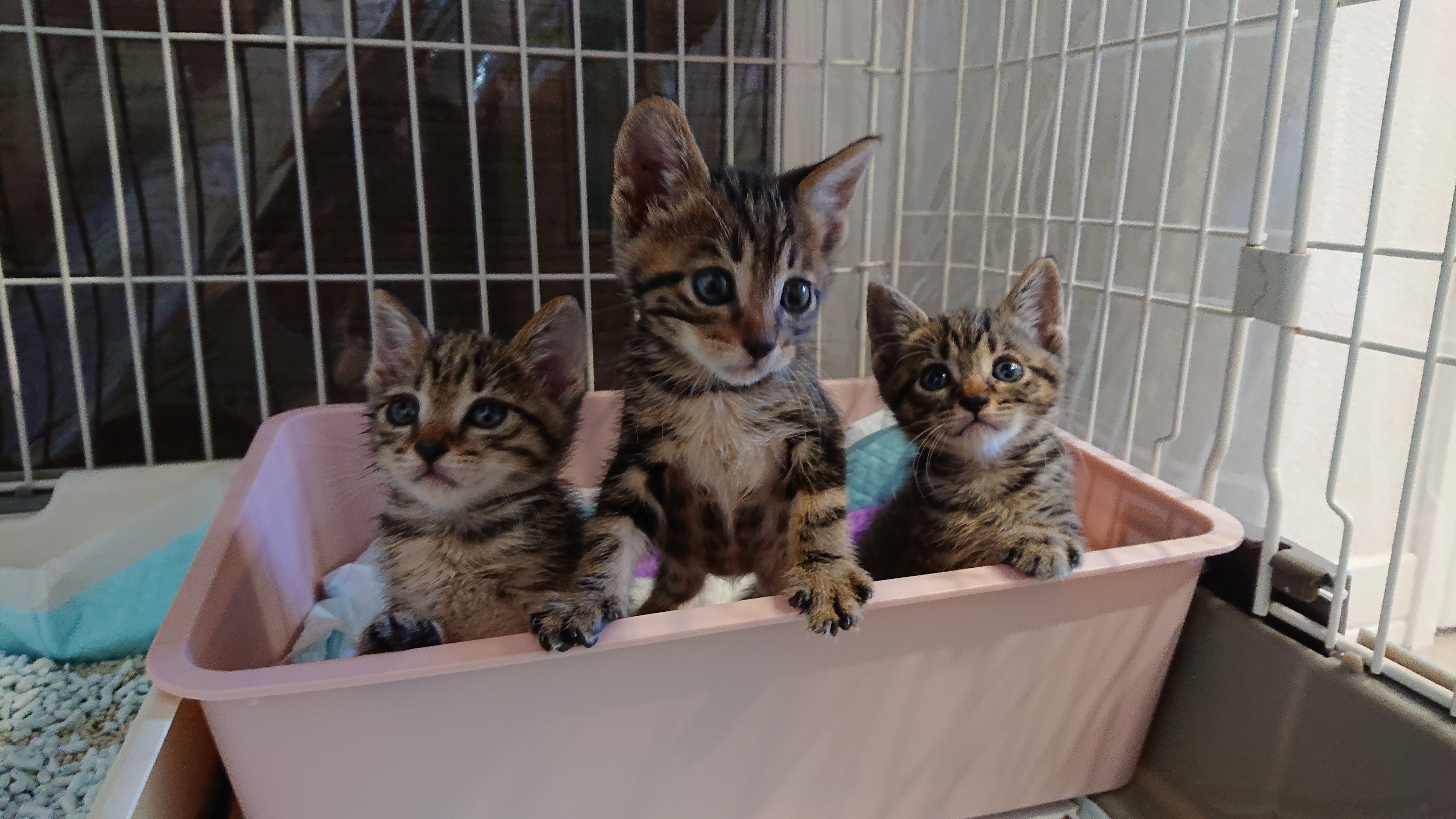 先日お預かりすることに決めた子たちのうちの、保護主さん宅でお世話してもらっていた3匹がやってきました。一生懸命お世話していただいたお陰で、1週間で100g以上大きくなっていました。小さな身体でシャー!もお披露目してくれて、とてもかわいらしいです。そして、名前を決めました。みんなそっくりで、誰が誰だかわからなくなりそうですが(笑)♂透生(すい)→“命”をギリシャ語でスイと言うらしいです。せっかく生まれた命、幸せに生きてほしいという意味を込めました。♀芽(めい)→命や力が芽吹く。幸せな猫生になってほしいという意味を込めました。♀糸(いと)→幸せな運命の糸を手繰り寄せて、愛されて生きてほしいという意味を込めました。9月半ばまでの予定で預かりしていただいているあとの2匹も、♂愛々(めめ) ♀天(てん)という素敵な名前をつけていただいて、すくすく成長中です。また追って、写真と様子を投稿させていただこうと思います。ママ猫ちゃんは、明日避妊手術予定です。お迎えは私が行く予定なので、ご挨拶はしておこうと思います。ーーーーーーーーーーーーーーーー嬉しいご報告があります!トライアルに出発していた陸ちゃんの正式譲渡が決まりました。飼い主さんにべったりくっついて寝ている写真を送っていただきました。まだ先住のおねえちゃんからはシャーされているようですが、また様子をお聞きしていこうと思います。ーーーーーーーーーーーーーーーーいただいたご支援金は大切に大切に1円も余すことなく使わせていただきましたが、野良猫ちゃんの高額医療費や、事情でリターンできなかった子をみなしご救援隊さんにお願いするなどの支出があり、かなり厳しい状態です。 少しでも長く活動を続けるため、ご無理のない範囲で、ご支援いただけたら嬉しいです。 https://www.amazon.co.jp/hz/wishlist/ls/3CTJTIQAK7K4L?ref_=wl_share 千葉銀行 君津支店 普)3550840 ナグラユカ