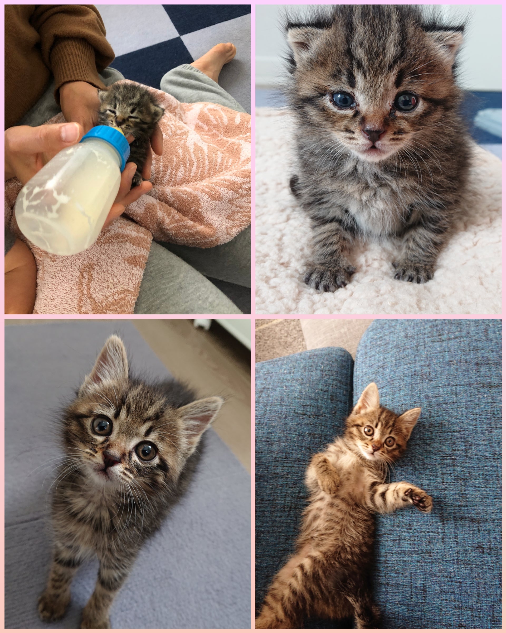 5/2に165gで我が家にやって来た小梅ちゃん。初めての乳飲み子で、毎日ドキドキしながらお世話し、心配しすぎなぐらい病院にも通い、食べなければ試行錯誤の日々。そんな小梅ちゃんも1200gを越えて、すっかりおてんばな猫さんに変身しました。名前を呼べばどこからでも走ってきて、気づけば足元にいる小梅ちゃん。いつかは別れが来ることはわかっていながら、里親さんが決まるまでもう少し我が家に居る予定でしたが、今日、保護主のところに戻ることが今朝急に決まりました。今日譲渡会デビューで、そのままお別れになりました。急すぎて心の準備ができていなかったため、完全に小梅ロスです。でも何組か、小梅ちゃんの里親希望でエントリーいただきました。小梅ちゃん、ずっとのお家で、沢山可愛がってもらって幸せに過ごしてね。うちに来てくれてありがとう。家でネロ兄弟が待っています。ネロ兄弟に愛情を注ぎつつ、これから出会う子たちのためにできることをやっていきたいと思います。そして先日欲しいものリストを載せさせていただき、ありがたいことにご支援をいただきました。気に掛けてくださり、本当に感謝しかありません。後日、改めて報告させていただきます。