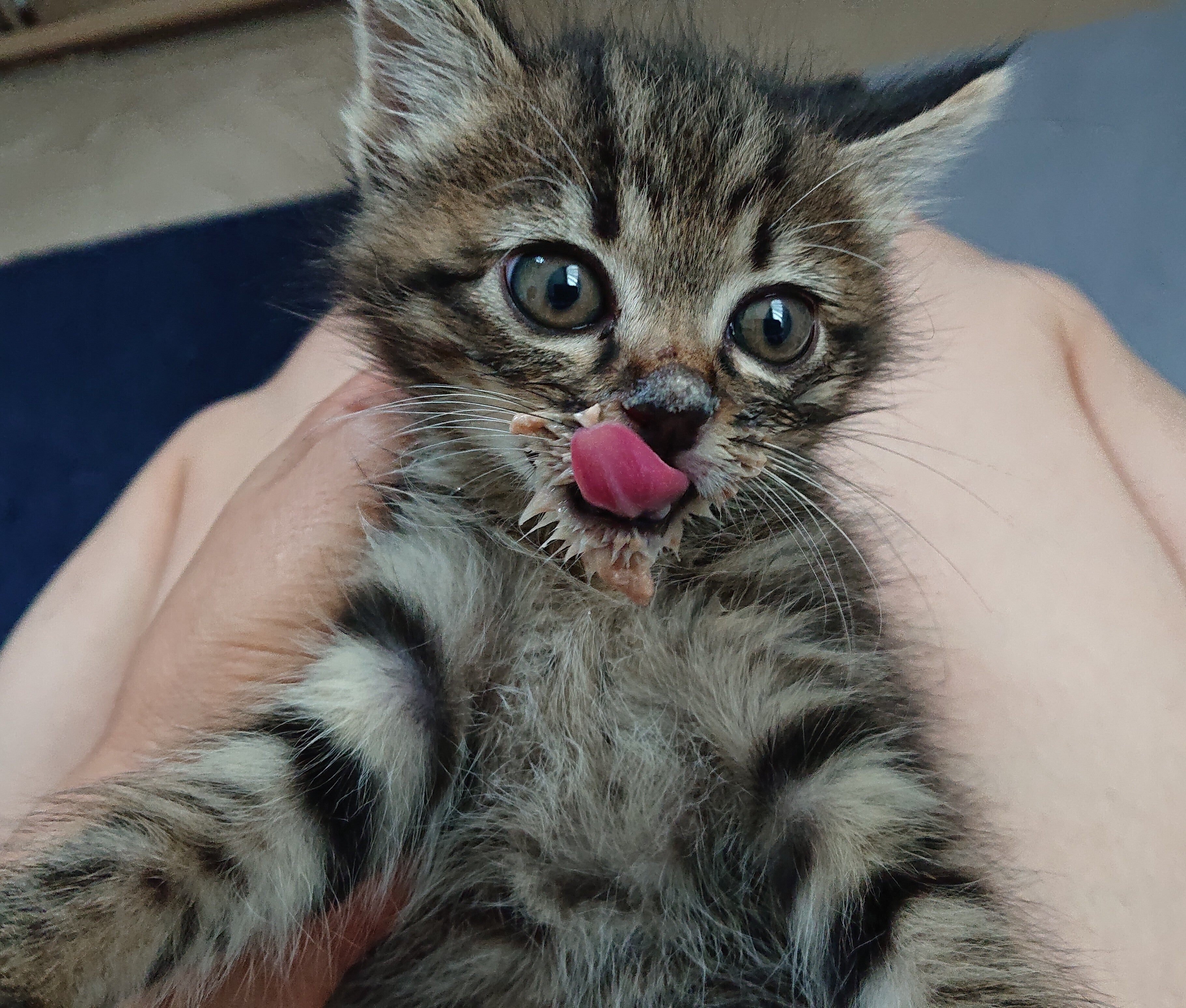 小梅ちゃん、700gを越えました!少し広めのケージにお引っ越しをしたため、自由に大暴れです。隙をついて部屋を脱走!なんてことも頻繁です。排泄も自分でできるようになって、離乳食も進んできています。もうすぐ1回目のワクチン接種をして、来月の頭に2回目のワクチン接種後、譲渡会に参加です。かわいい小梅ちゃん。愛情を注いで育てているので別れを考えるととても寂しいですが、元気にすくすく育って、素敵な家族に出逢ってもらいたいです。