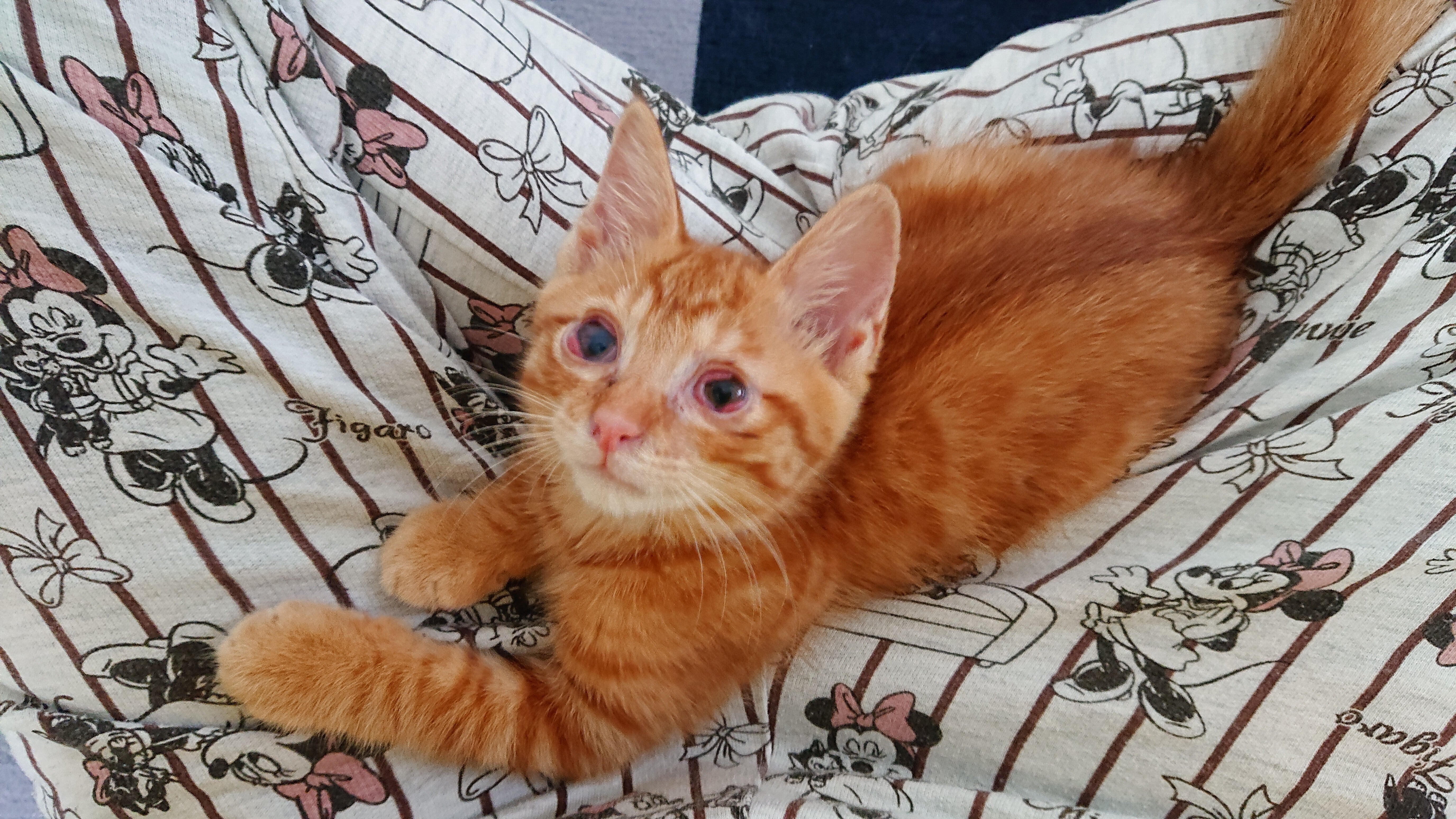 毎日お薬と5回の点眼を頑張っているネロ君です。結膜の赤みも浮腫も少しずつ良くなってきています。相変わらずご飯はいまいち食べてくれず、時に強制給餌はしますが、いろいろ試した結果カリカリのほうが好き?なようで、カロリーを考えつつカリカリもあげています。強制給餌を察すると逃げる逃げる……なんと素早いことでしょう。元気いっぱいです。体重も1060gまで増えました。ネロ君、風邪が治るまであと少し頑張って、絶対幸せになろうね。