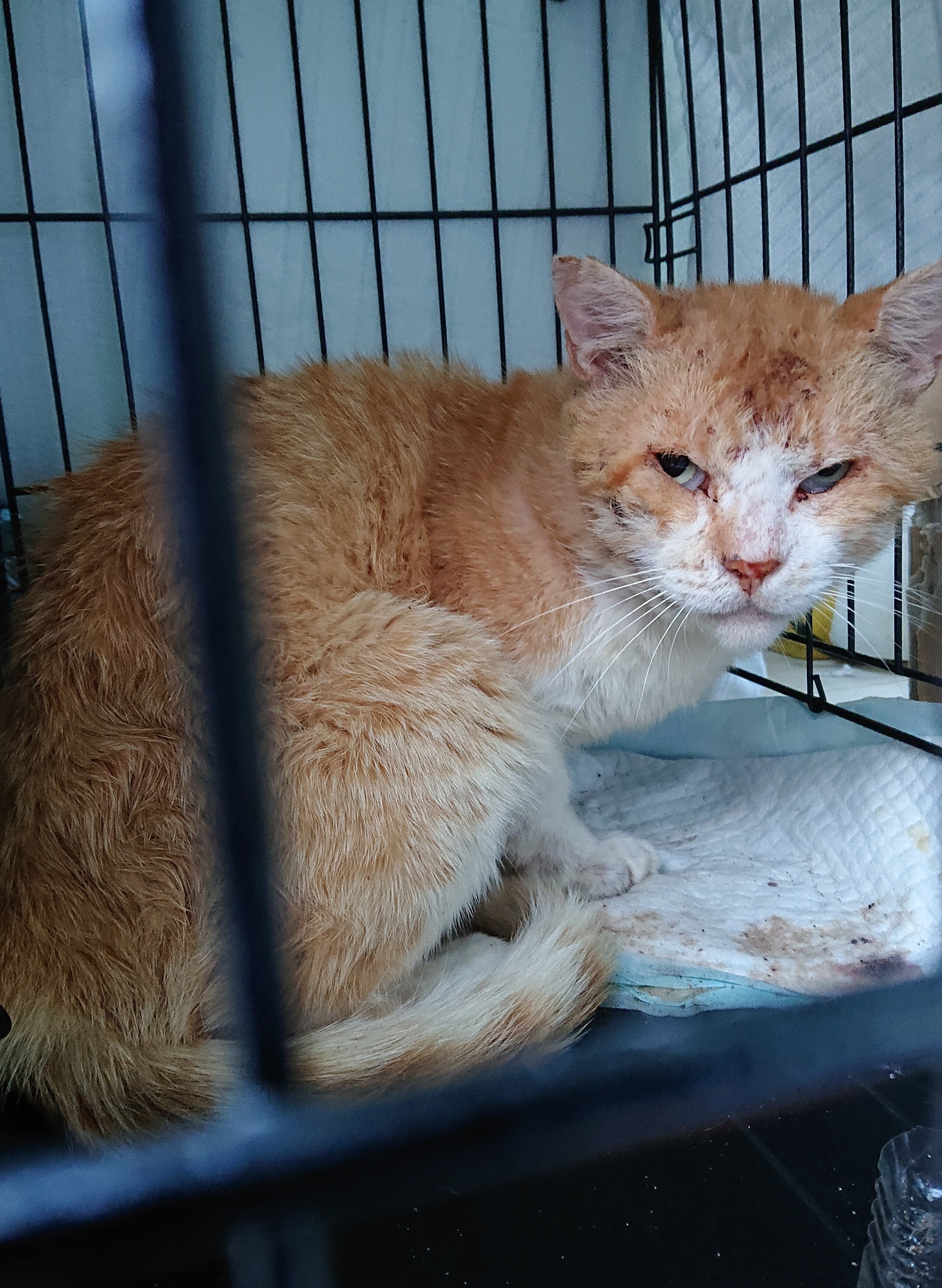ある現場で、親子猫がいると聞いて捕獲に向かいましたが、しばらく餌場で見なくなり、警戒するようになったと……イジワルされてしまったのか、真相はわかりませんが心配です。ご飯はなくなっているので、駄目元で捕獲器を仕掛けたところ、違う子が入りました。疥癬(とても痒い皮膚病)があり、掻きむしって傷だらけでした。昨日手術をお願いし、ワクチンもしてもらう予定でしたが風邪をひいていたため抗生剤の注射と、疥癬に対してのお薬をつけていただきました。軽い脱水もあったとのことで、補液もしていただいています。あまり威嚇をせず、触れるんです。そして目の前でご飯食べるんです。生粋の野良ちゃんではあまりないことだと思います。誰かに飼われていたのか、どこかでお世話してくれる人がいるのか……このあとリターンです。風邪も疥癬も良くなりますように。引き続きご飯は置いていただきます。親子猫もなんとか……カメラを仕掛けて、姿を確認してから再度挑戦しようと思います。