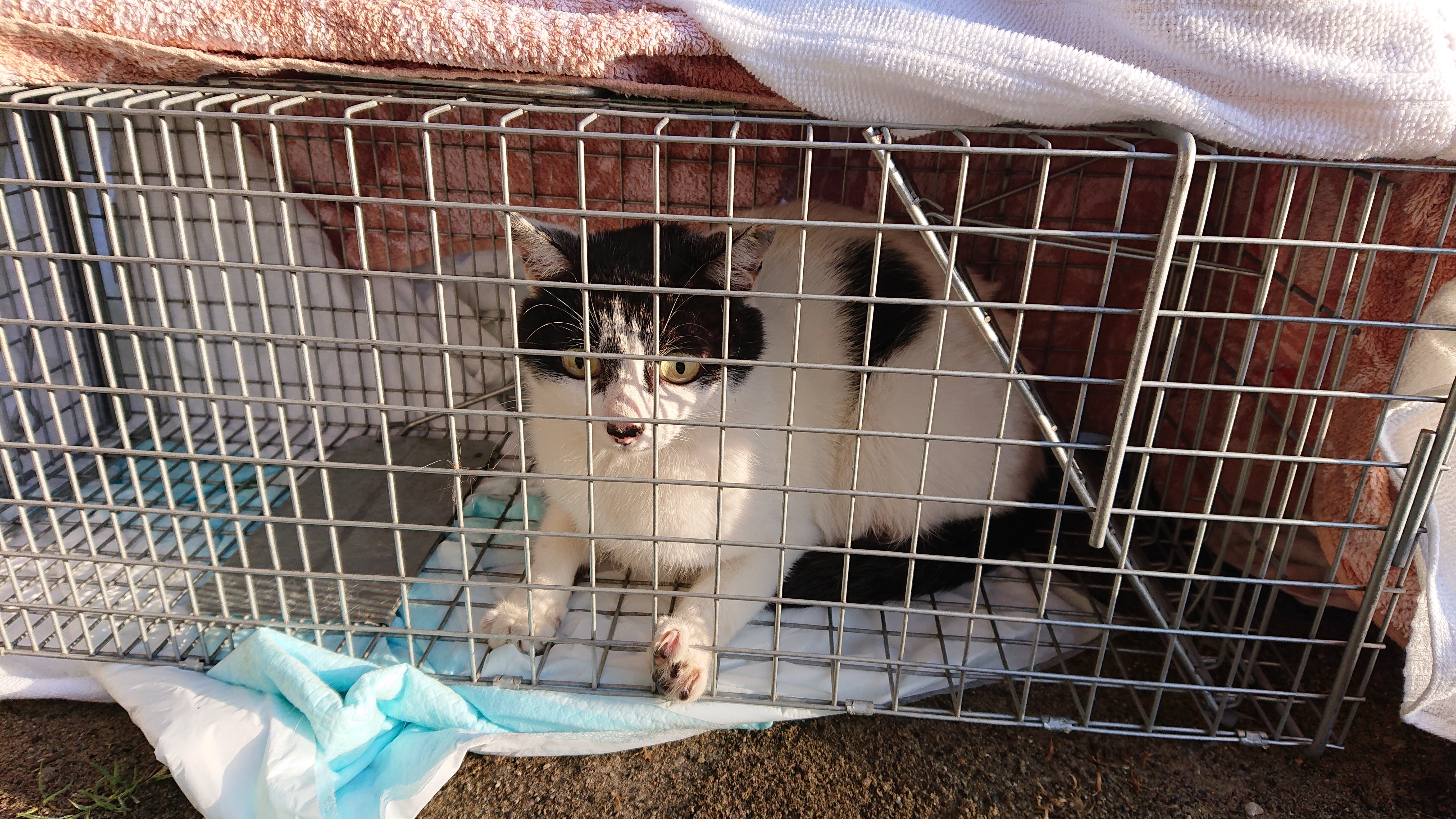 前回TNRとみなしご救援隊さんにお願いした子たちと同じ場所で餌やりされている子たち2匹の手術です。捕獲はまた2日間で行い、1日目は夜中までかけましたが全敗でした。♀の子は、滅多に顔を出さない子で餌やりさんのお隣でご飯を食べている子のようですが、捕獲に行った時に遠くで目が合って、何故か用意したご飯に近づいてきて、あっさりと捕獲できました。でも問題が……明らかに授乳しているおっぱいです……本来ならば仔猫が居るのがわかった時点で一旦放すべきなのでしょうが、この子はもう二度と捕まらないかもしれない。そうなったらこの先も不幸な命を産ませることになってしまう。この子自身も身体に負担をかけ続けなければいけない。仔猫の大きさは不明ですが、餌やりさんの話では出産して1ヶ月ぐらい経っていると思う、とのことで…… 翌日の朝搬入で、帰りは夜になります。そうすると、1日半は仔猫から離れることになります。仔猫がいるのがわかっていて、みすみす見殺しにすることはできません……いつも手術をしていただいているTNR専門の先生に相談をして、夜遅くても良ければとのことで早くリターンできるように手術をしてくださることになりました。生まれたてであればそれでも生存が難しくなりますが、1ヶ月程度の子であることを願い……夜車を飛ばして片道2時間弱の場所で、その日に限って息子が寝ないんです!まさかの、息子と2人で夜のドライブをすることになりました。先生の見た感じ、4~5匹ぐらいは仔猫がおっぱいを吸っているのではないかとのことでした。とても丁寧に素早く対応していただきました。夜中の1時頃に手術を終えて、6時頃に元の場所へリターンしました。仔猫のところに帰ったかな……仔猫たちは無事だったろうか……心配は尽きませんが、仔猫を連れて歩いている姿を見れることを信じて。仔猫たちに会えたら、幸せにできるように全力で頑張りたいと思います。♂の子は餌やりさんに懐いているようで、抱っこでクレートに入れてもらいました。お昼間に手術で、夜お迎えに行きます。車で轢いては仔猫を殺している人が……と前回の報告で書かせていただきましたが、それ以外にも側溝に落ちたり外的や事故で死んでしまい、そんな過酷な中でも生き残ってきた子たちです。手術して、身体のストレスや負担も軽減されると思います。少しでも穏やかに暮らせることを願います……以前住んでいた地域でも2匹捕獲器に入りましたが、1匹は授乳中であろう様子だったので、そのままリターンし、また再度挑戦します。1匹は飼い猫ちゃんらしく、こうやって捕獲器で悪い人間に捕まるかもしれない。事故にあうかもしれない。そんなリスクを理解して、放し飼いをしないようにお話できたら良いのですが……今回、遅い時間にも関わらず、命を救うための最善の方法を考えてくださり、対応してくださった獣医さんに心から感謝いたします。