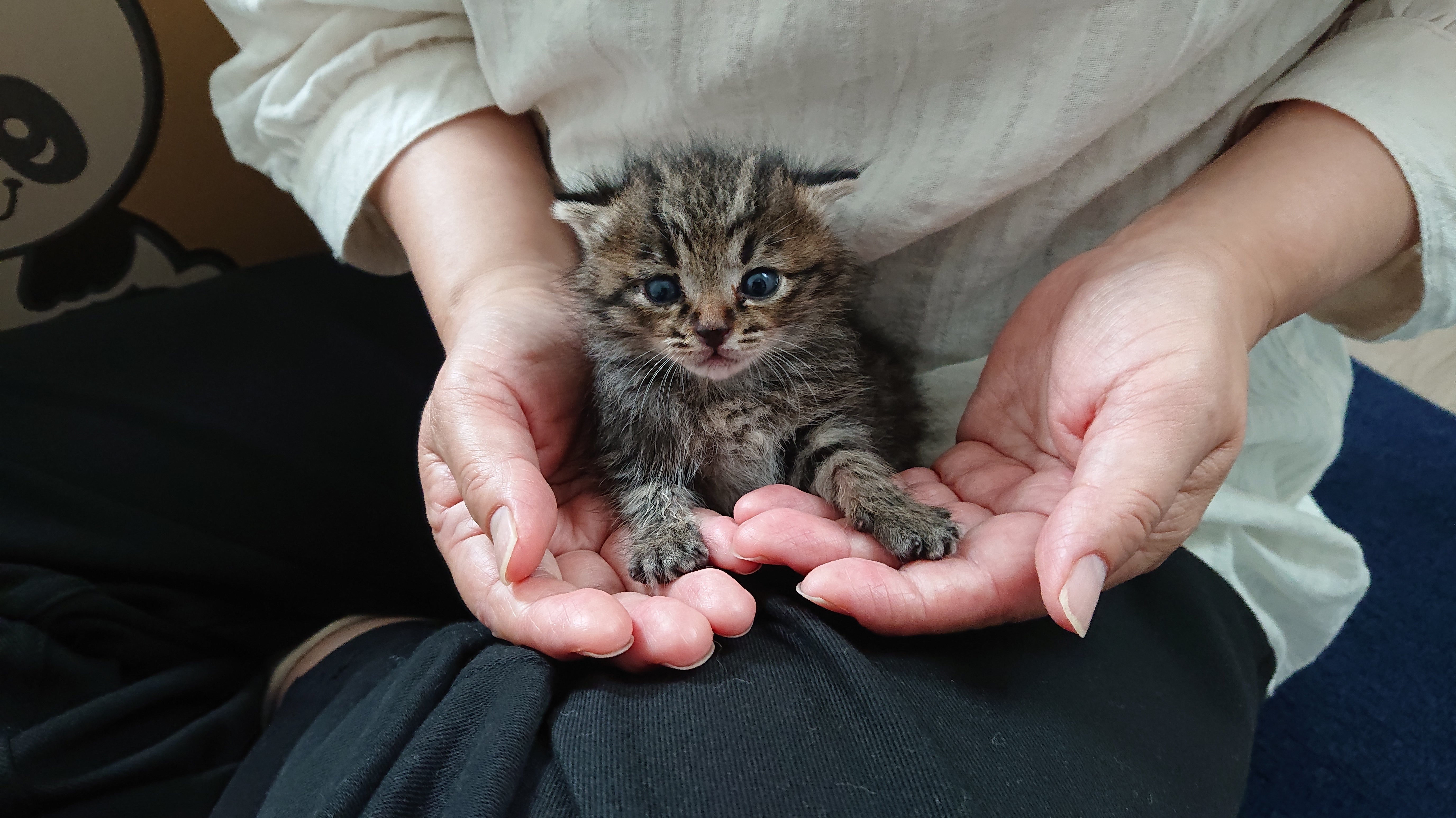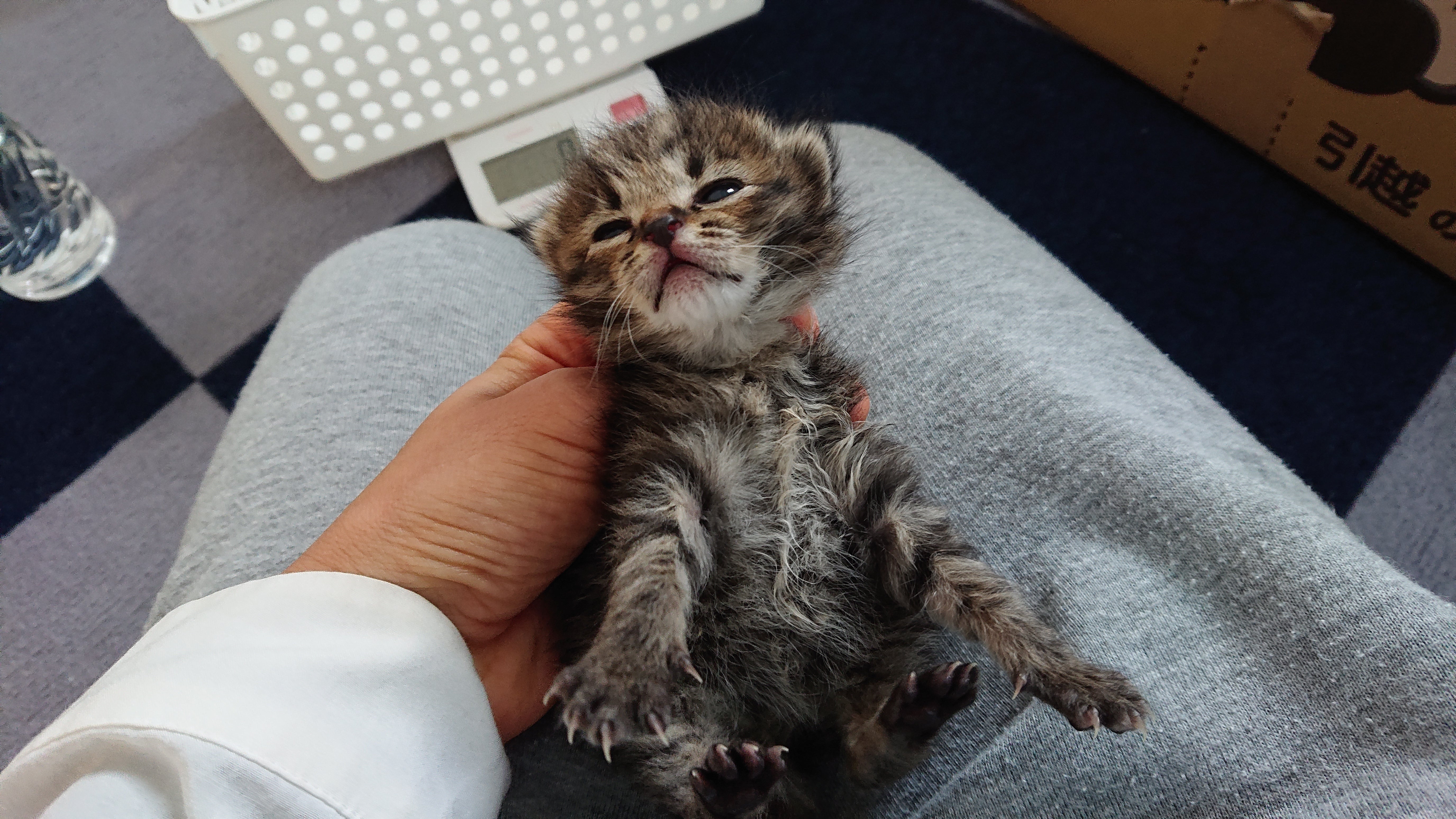 縁あって、小さくて重たい命をお預かりすることになりました。今までお世話してきた仔猫たちはみんなママ猫ちゃんがしっかりお世話してくれていたので、4週以降のしっかりした身体の子たちばかり。初め見たとき「!!!」「……」そんな感想でした。庭にひとりで鳴いていたところを保護主さんが見つけて、家に入れたそうです。母猫がいたのかどうかはわからないそうです。でも、ミルクは1日2回しかあげれていなかったそうで……4/29に保護して、我が家にやってきたのが5/2の夜。低血糖や脱水が心配でしたが、元気に鳴いてくれました。夜中3時間毎に哺乳を試みるものの、哺乳瓶でなかなか飲んでくれず、シリンジで少しずつ少しずつ飲ませました。誤嚥に気をつけながら。夜の最初の体重は165g。朝の体重は160g。乳飲み子の体重減少は命取りになると聞いたので、朝一番で病院に行きました。飲ませ方や量や適した濃度を教えていただきました。生後10日ぐらいの女の子だそうです。ミルクで育てた経験がないため、不安しかありません。次のミルクのときに息をしているかドキドキしながら覗き込んでいます。とにかく身体が冷えないように注意しながらやっています。乳飲み子は人間の手で育てるのは難しいと聞きますが、お預かりしたからにはそんなことは言っていられない。せっかく生まれてきたからには、しっかり育てて幸せになってもらわなくては。生きて幸せになろうね、小梅ちゃん。