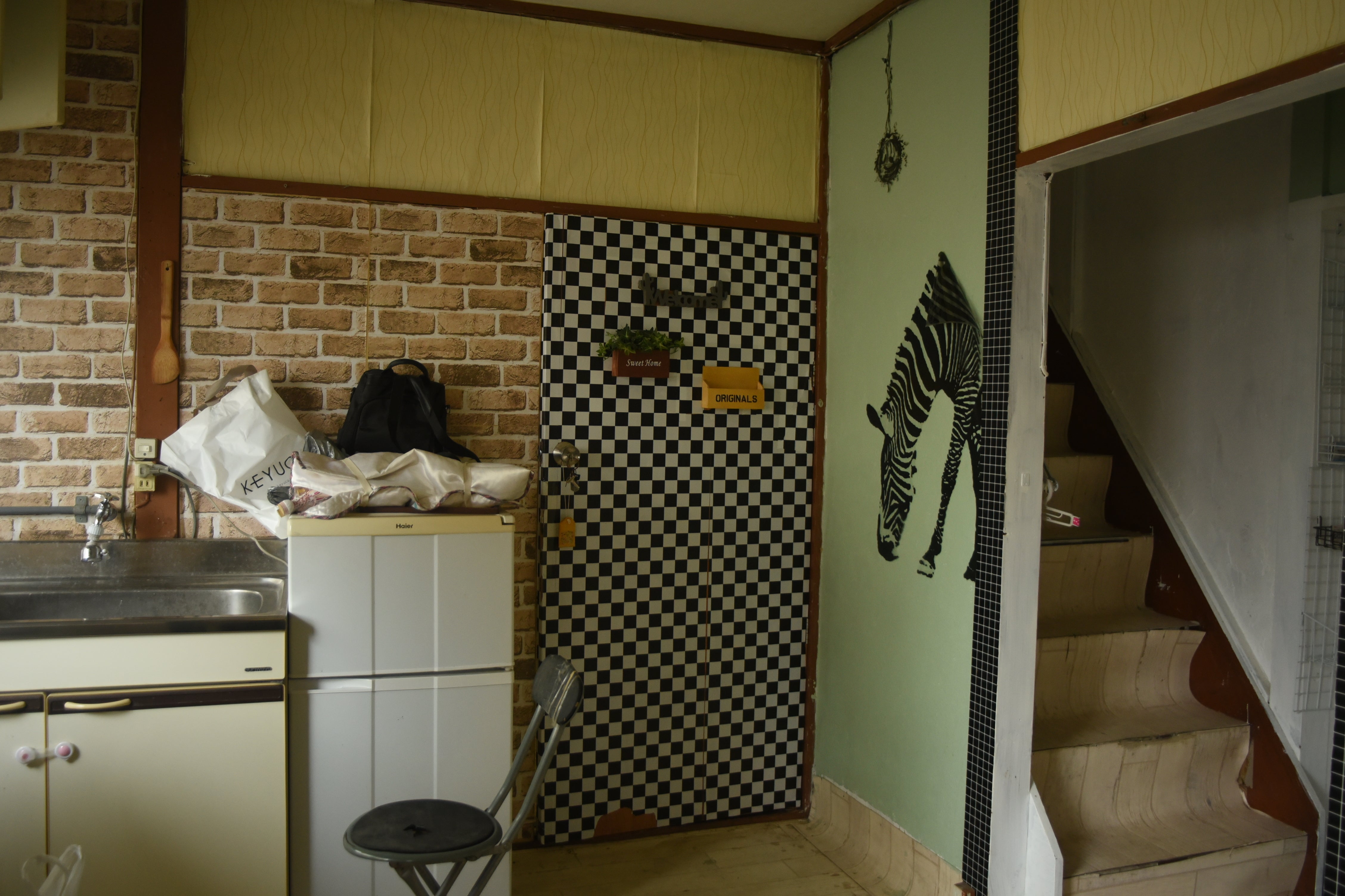 壁紙が両面テープで貼られてたり、なぞの木箱が接着剤で止められてて大変でした…笑