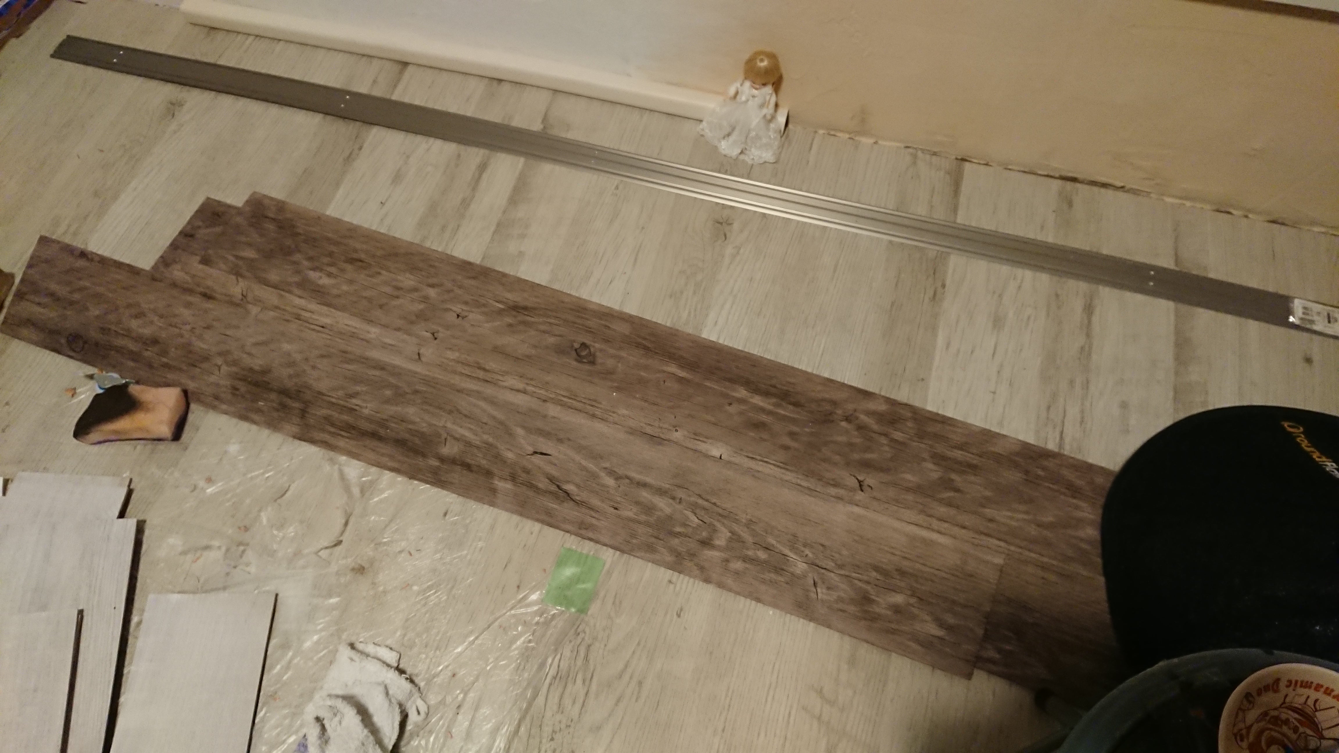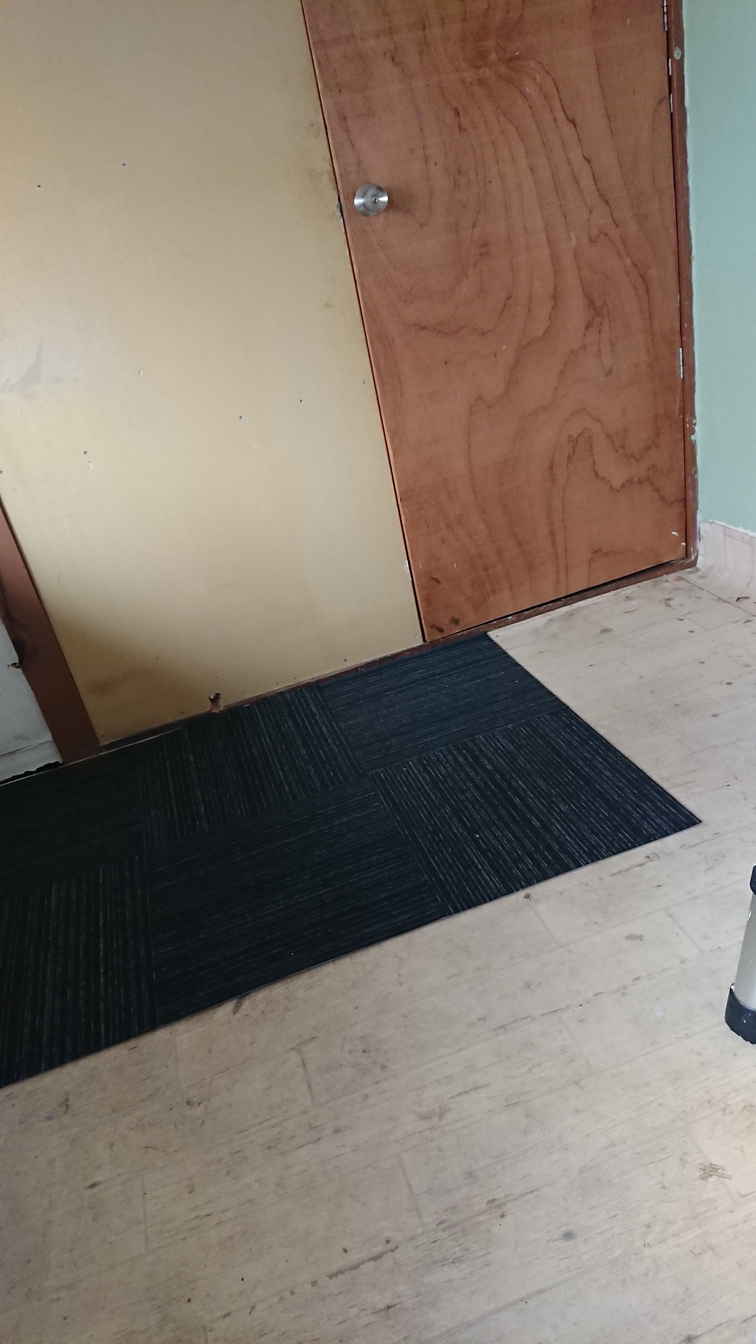 カーペット色を悩み中。入口を黒にして作業部屋を白にするか、入口を白にして作業部屋を黒くするか、どっちも黒にするか~うーん