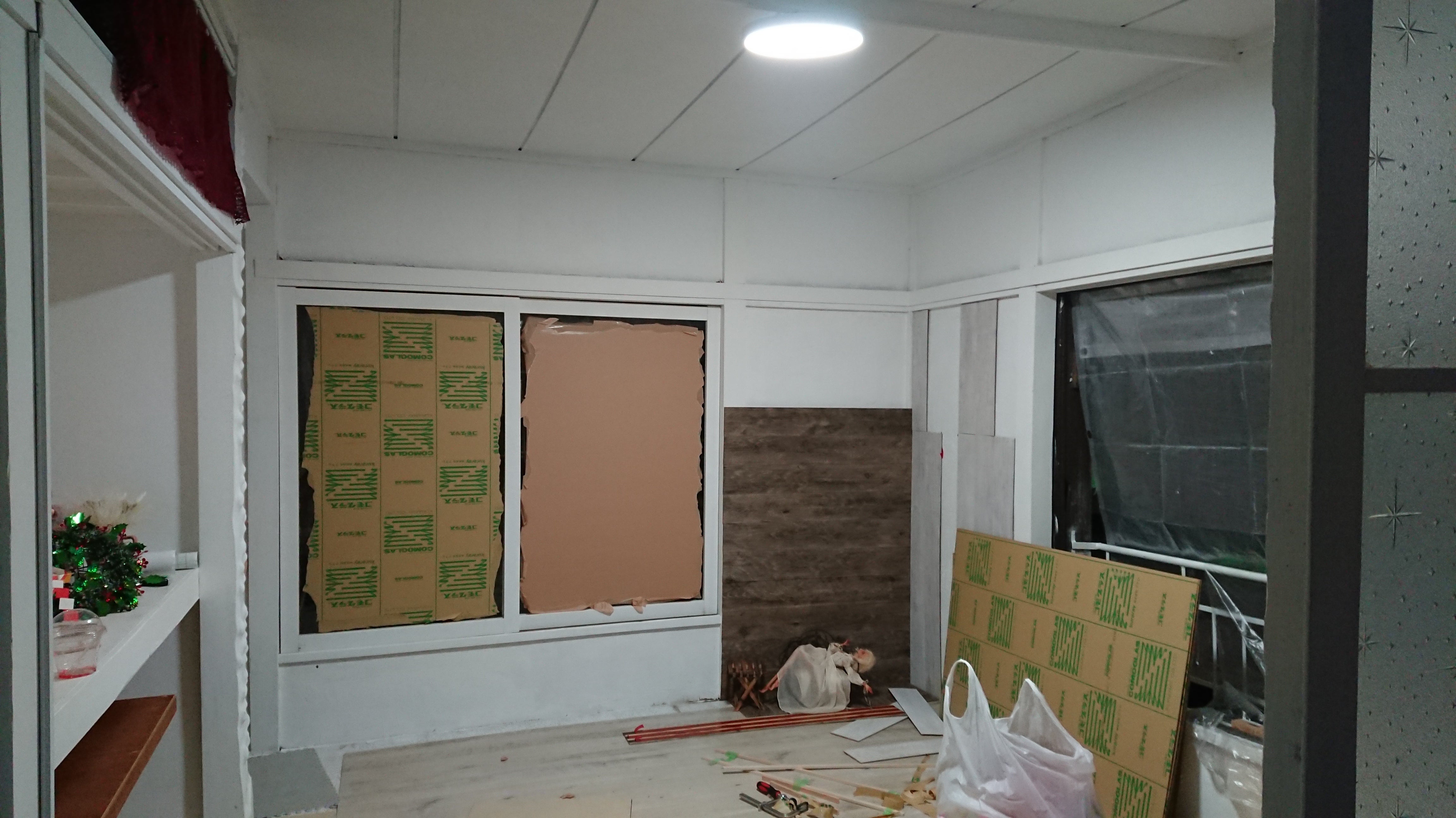 ついに左側窓の大枠が完成しました。といってもまだ枠をはめてビス止めしただけでここからコーキングと棧入れがありますがとりあえずは完成です。