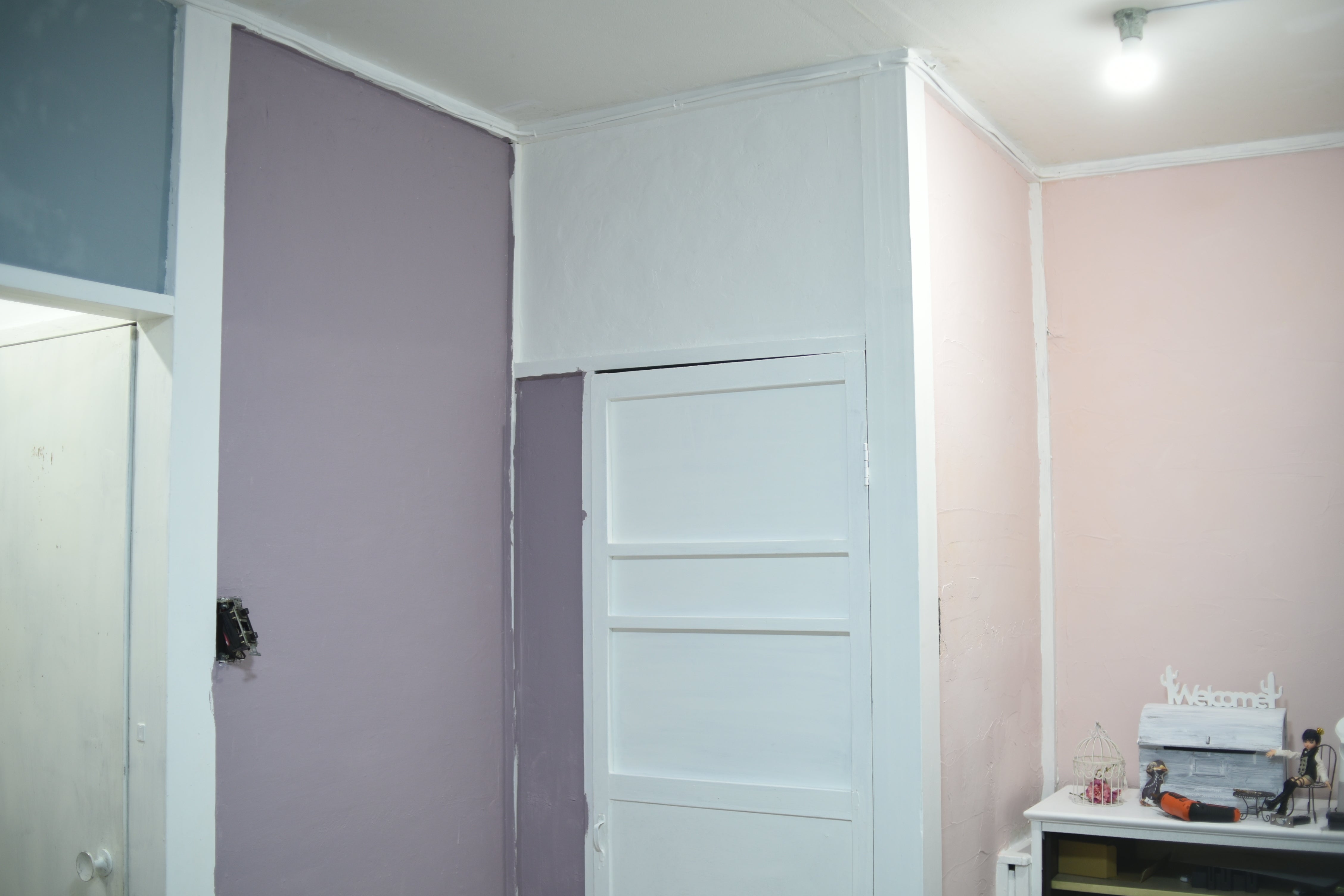 作業部屋のドアと上部の壁紙張り
