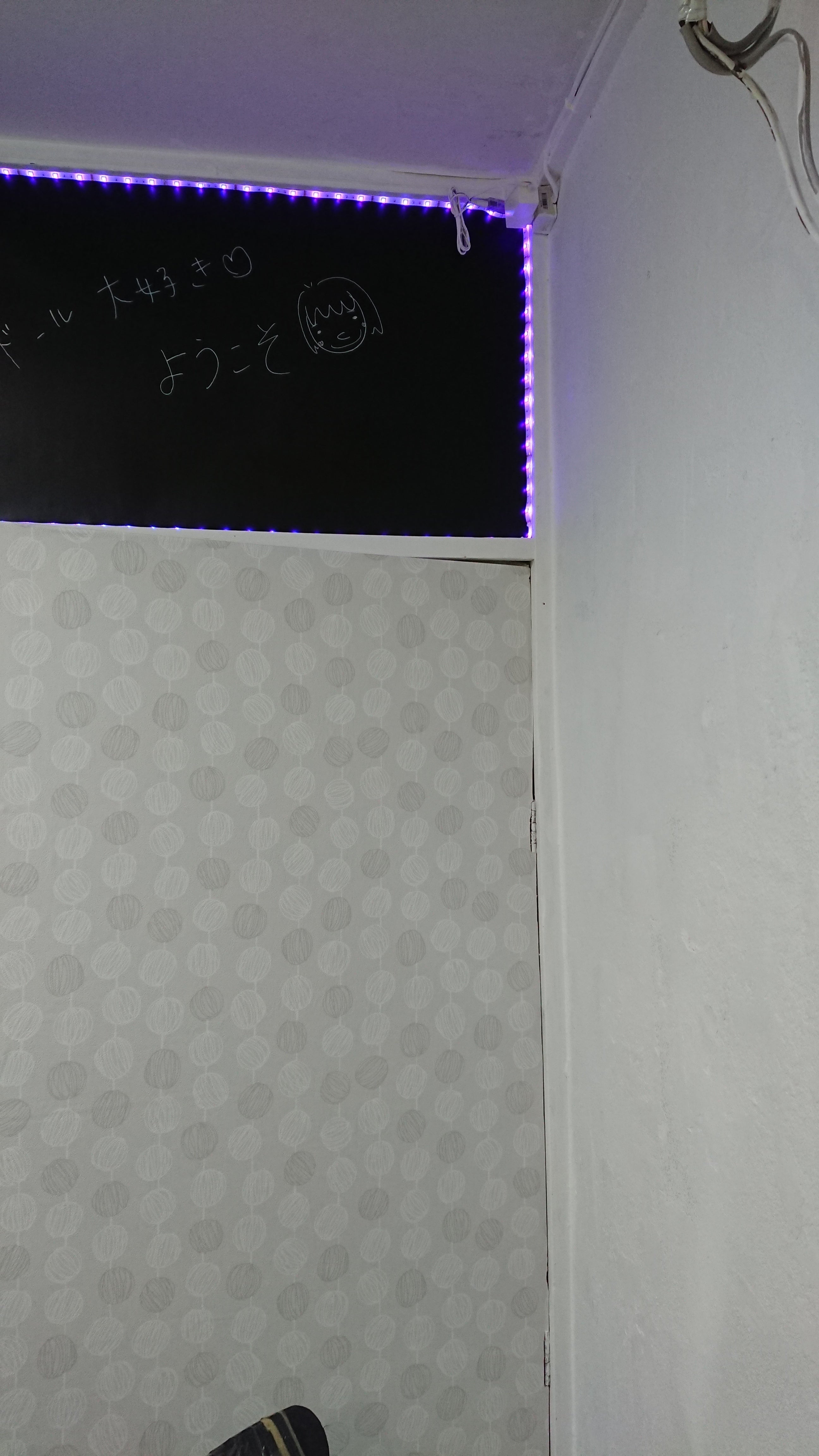 また、ドアの横(白い方と逆側)をコルクマットにして、掲示板みたいにします。
