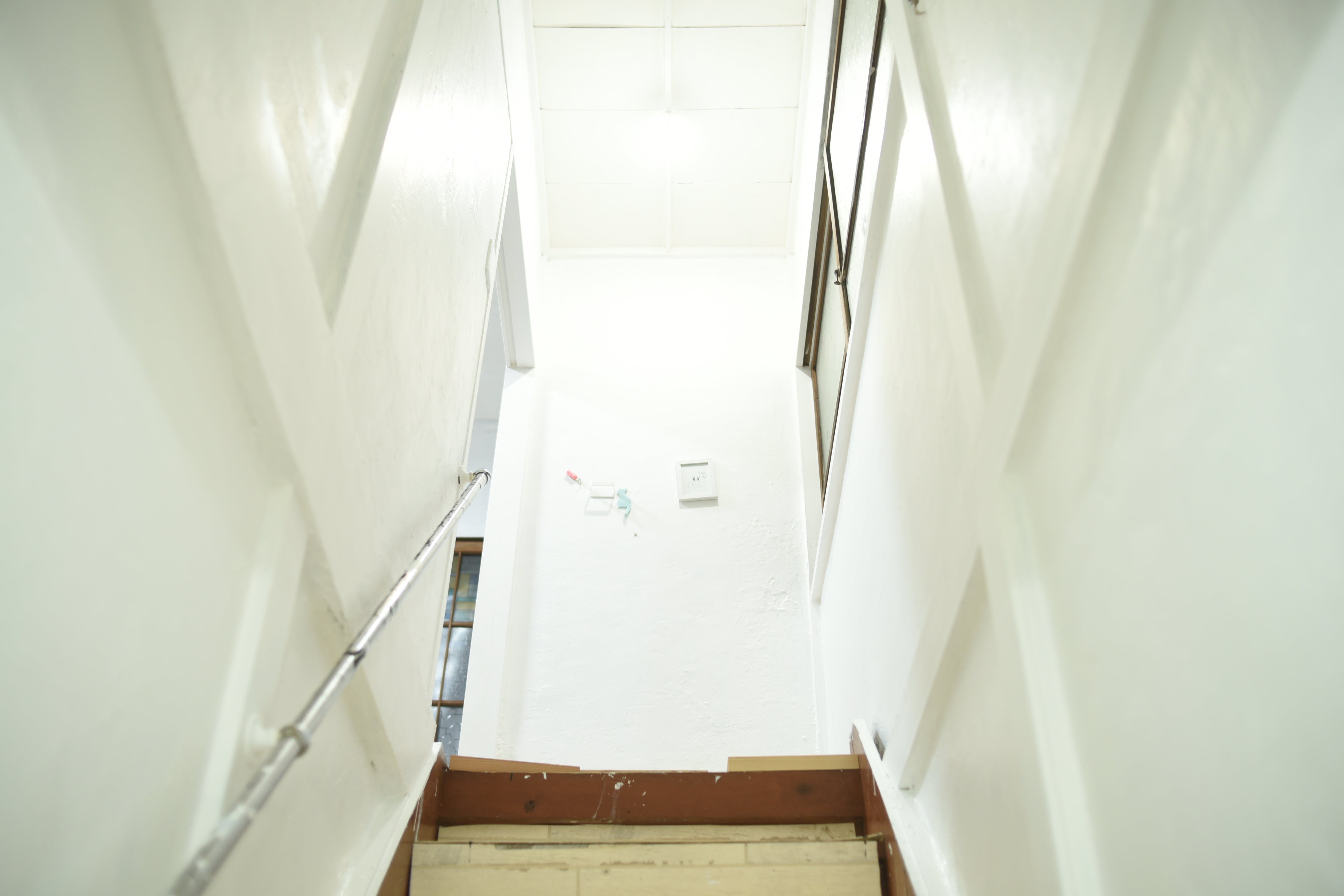 階段の壁ほとんどにマグネットを仕込み、マグネットウォール階段が完成しました。みんなの写真を飾ったりします!