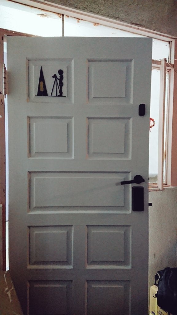 看板とドアのぶ取り付け