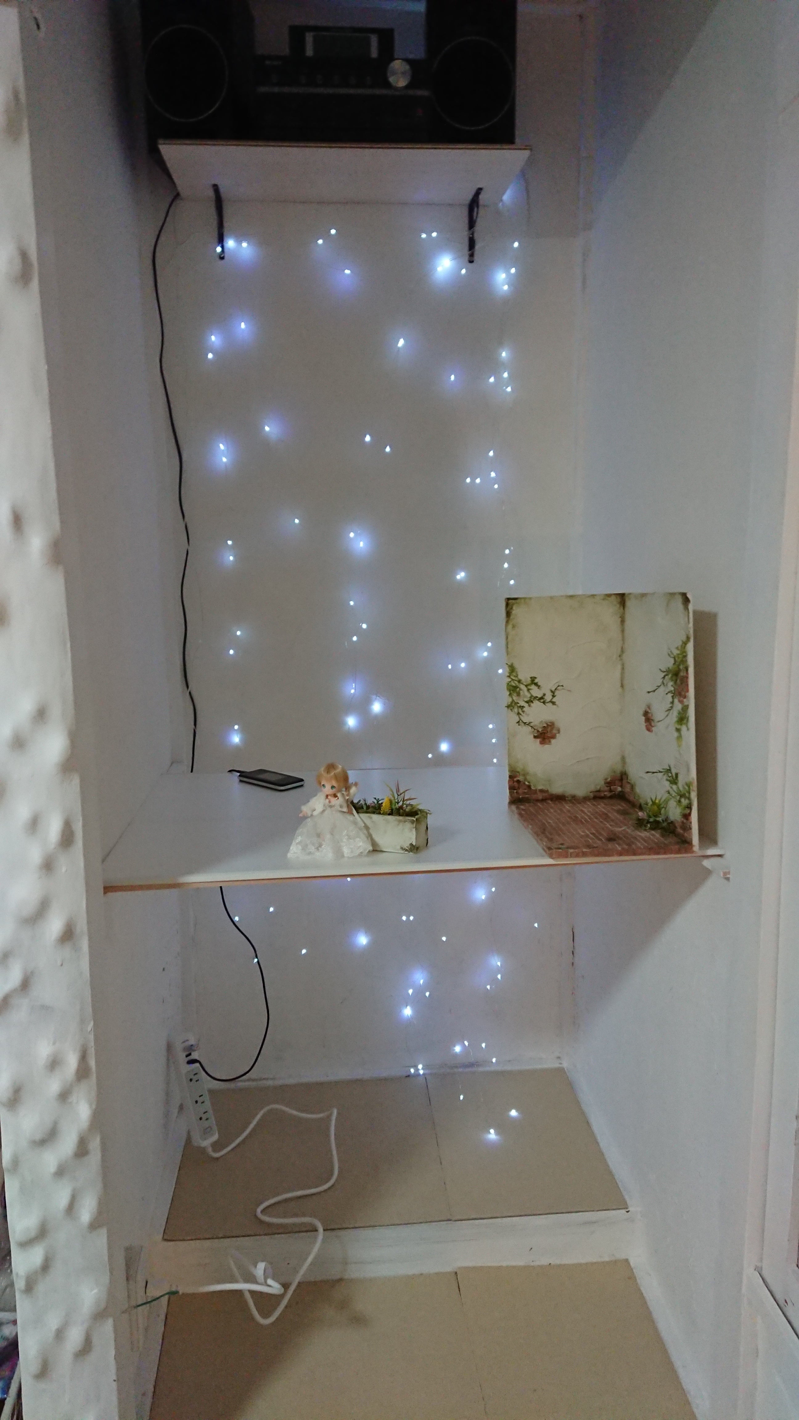 ミニチュア撮影ブースの土台が完成しました。延長コードは後程壁に止めます。床部分のプレートは付け替えできるようになっており、フローリング風やコンクリート風など付け替えて遊べるようになります。また、背面も同様に様々なパネルを増やしていく予定です。