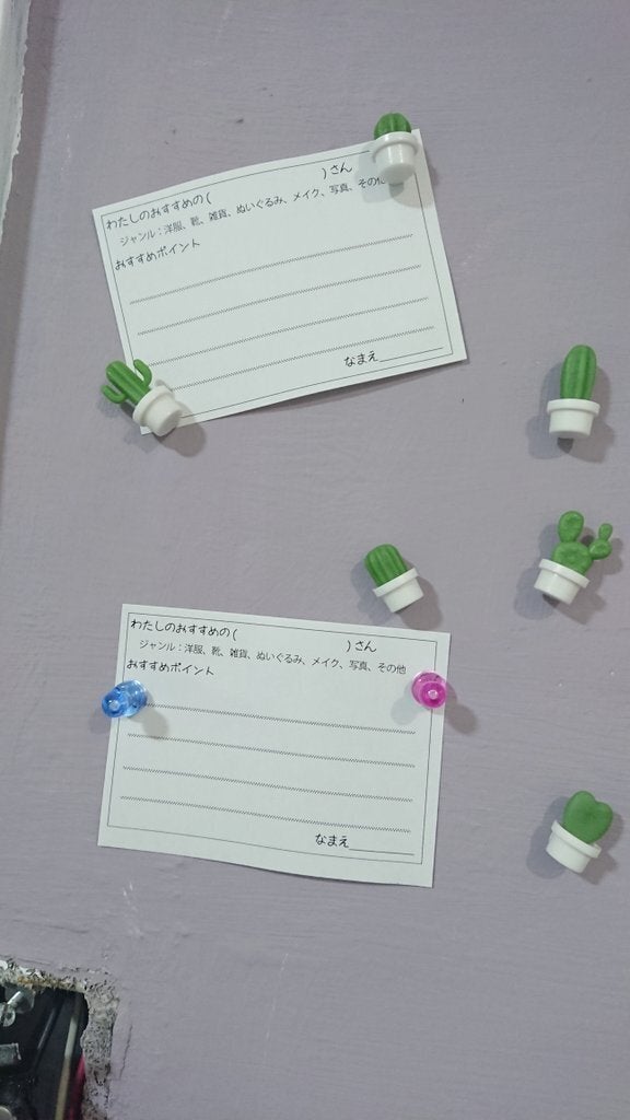 作品紹介のコーナーの壁にいろんなマグネットを追加しました。