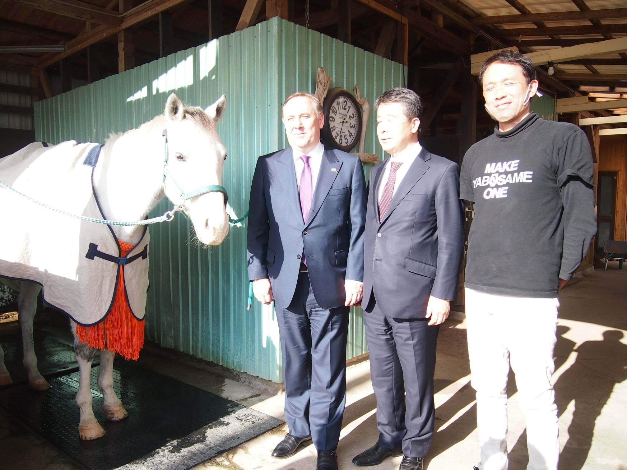 ・2020年12月、ルスラン・イエシン駐日ベラルーシ共和国特命全権大使 がCLUB RIOを訪問され、ベラルーシ産リネンを使った馬着の見学や、CLUB RIOで取り扱っている馬用飼料「あまに煮」などの説明、引退した競走馬のセカンドライフのことまで熱心に耳を傾けてくださいました。