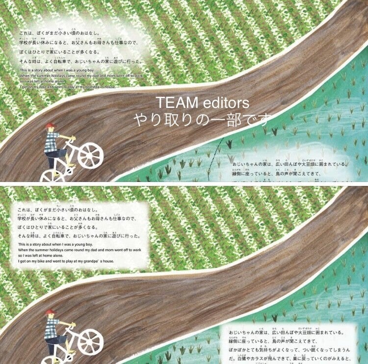翻訳担当は、オーストラリア人のNicole. 佐賀在住歴20年以上となるNicoleは、佐賀弁も上手にあやつれるので、独特の方言をうまく英語で表現してくれています。今回の絵本づくりでは、馬の走る音の表現など、日本語に多い擬音語や擬態語についてもピッタリの表現をみつけてくれています。