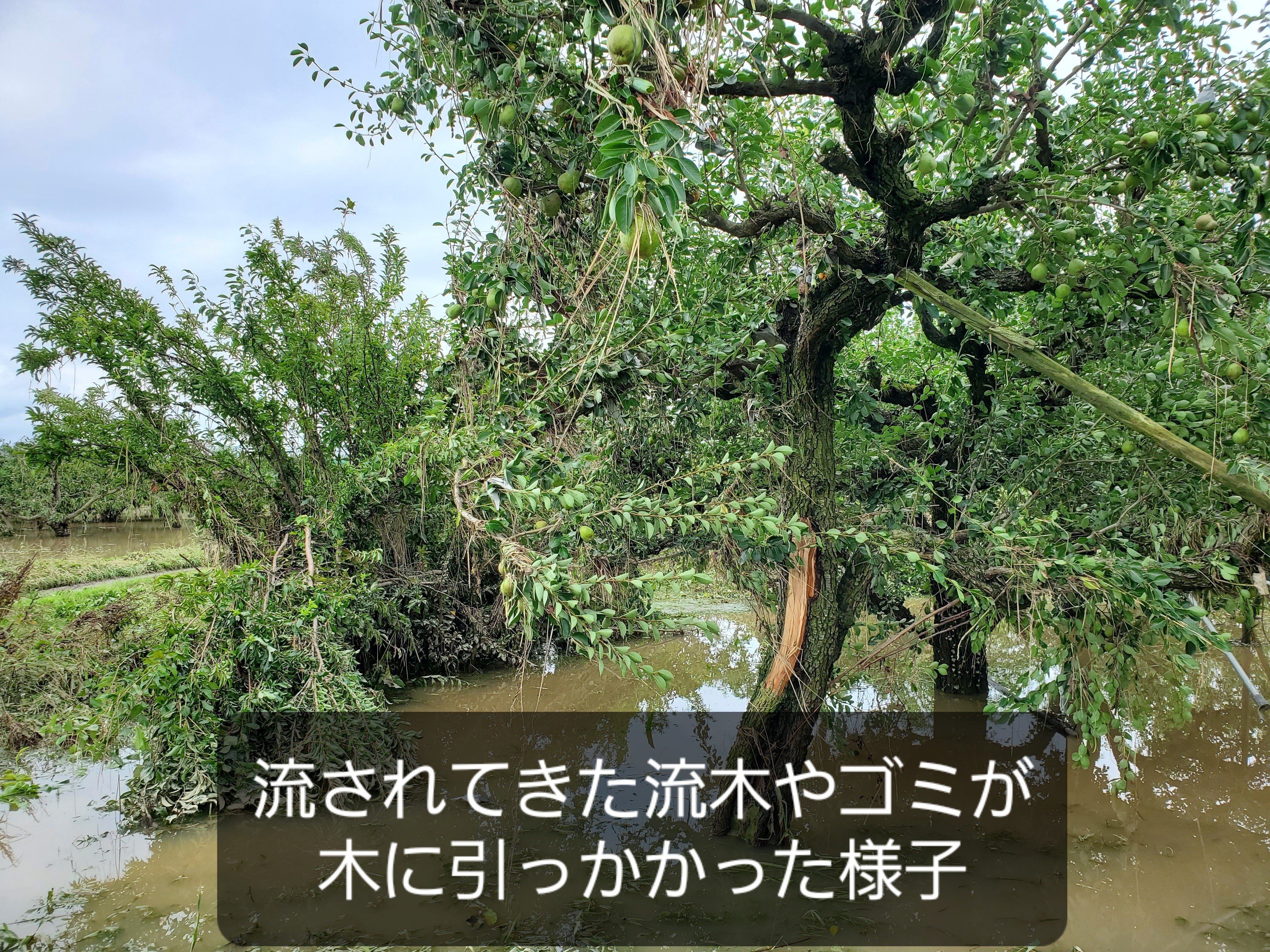 西洋梨も果実が濁流に流され収量は例年の半分以下