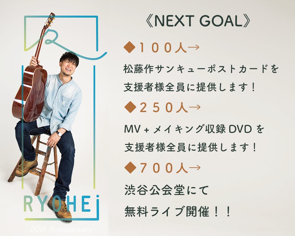 ▷ ネクストゴール達成リターンとして支援者様全員に「松藤作サンキューポストカード」「MV+メイキング収録DVD」を送らせていただきます! 700人目指して、引き続き頑張りたいと思います!