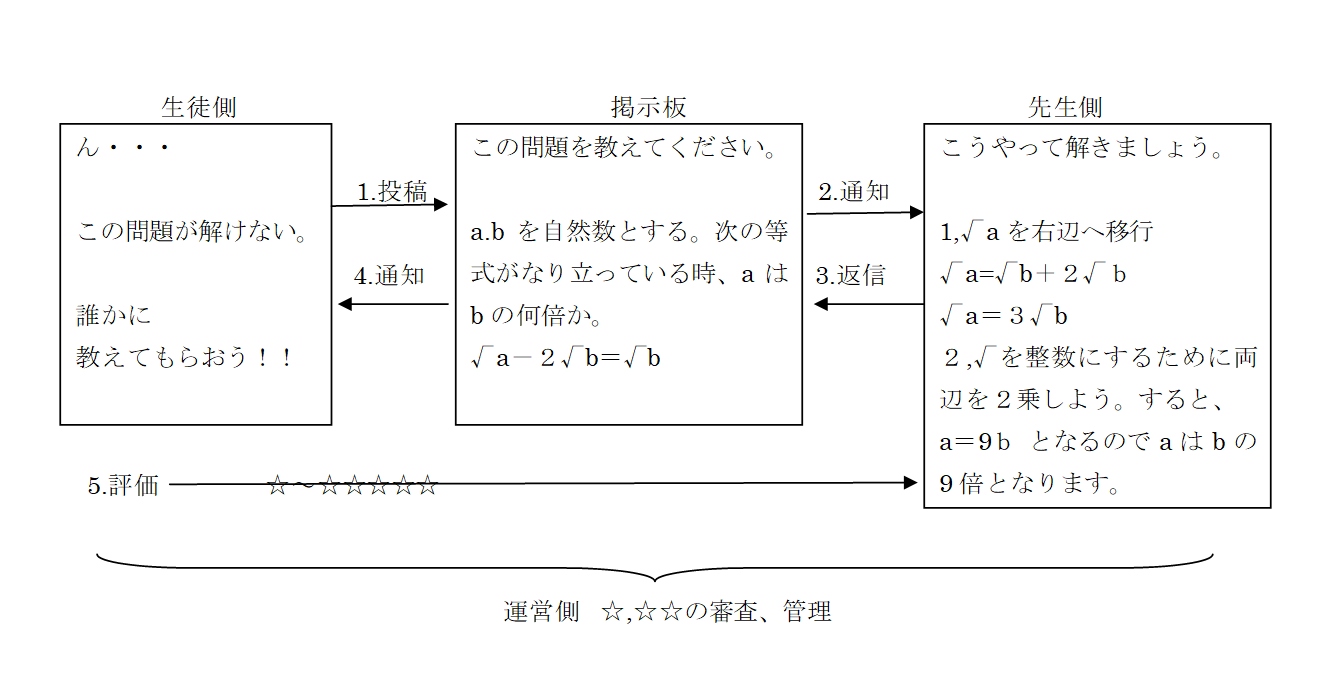 1、質問者が携帯等で問題を撮影し掲示板へ投稿