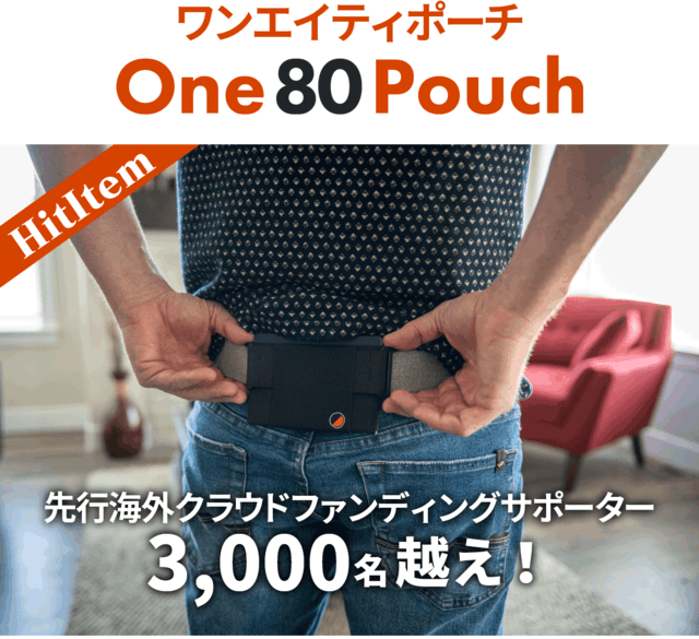 ベルト不要でベルト無しでウエストラインにスマートフォン、お札、クレジットカードを収納出来る超薄型ウエストポーチ「One80Pouch」。アメリカのクラウドファウンディングサイトKickstarterで3,000人を超えるサポーターを集めた One80Pouch が日本上陸!!