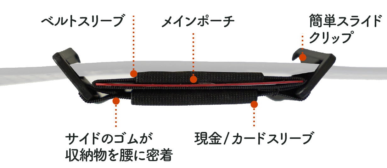 引っ掛けて持ち歩く超薄型ウエストポーチ。