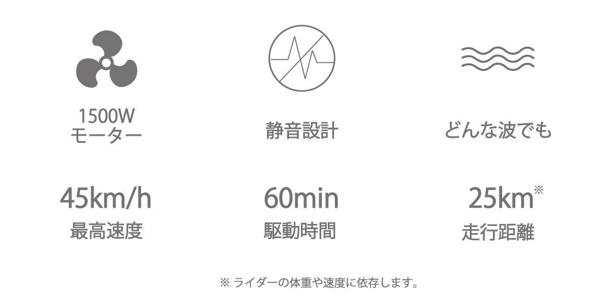 最高速度は45km/h、連続運転は60分を実現。気の向くままに海へ乗り出そう。