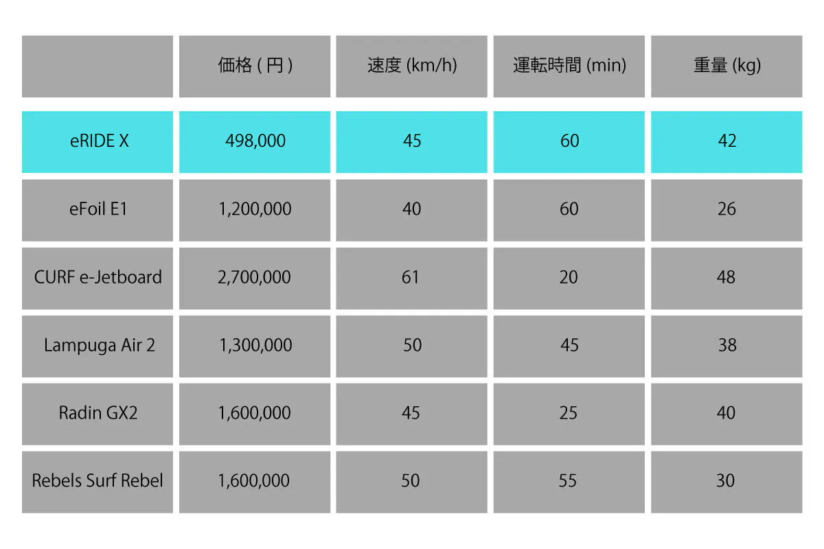 eRIDE X vs 他社