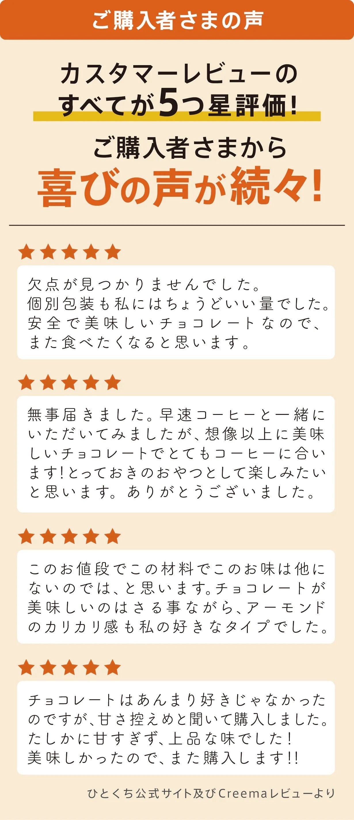 そうした現実を変え、日本でもより多くの方に、日々の暮らしの中で気軽に高級チョコレートをたのしんでいただきたい!という想いから、私達「ひとくち -HITOKUCHI-」はスタートしました。