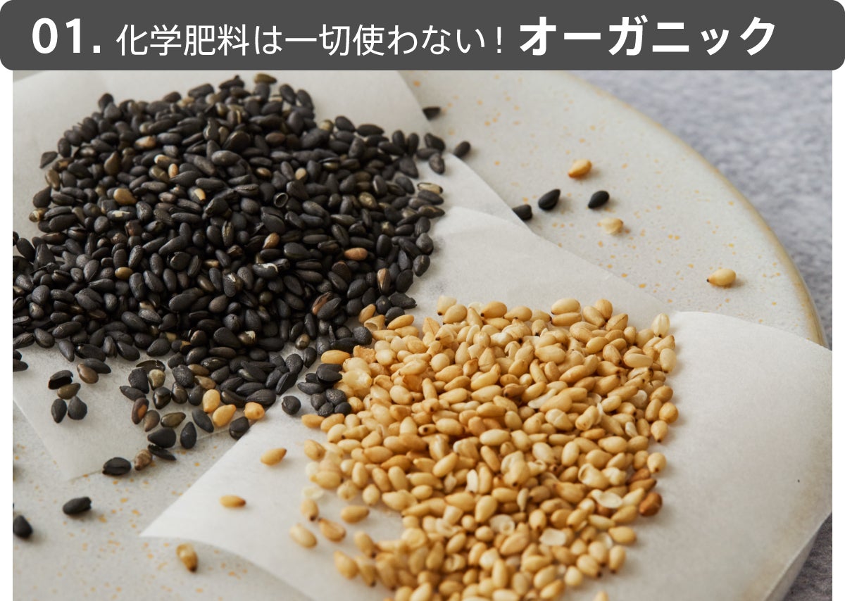 黒ごま本来の香りと味わいが楽しめるのは、湿気が少ない環境で、化学肥料を一切使わない良い土で大切に育てられたオーガニックごまだけ。