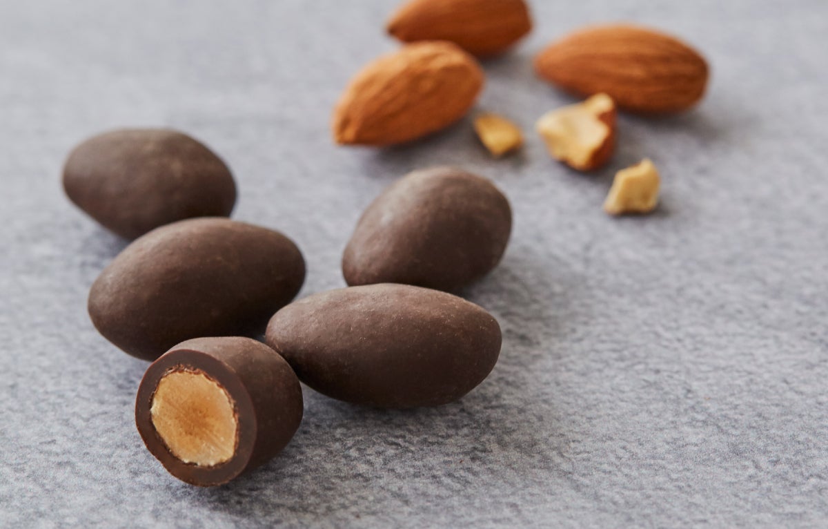 市販のナッツのチョコレートに使われている、艶々とした見た目を出すための光沢剤は、使っていませんので安心してお召し上がりいただけます。