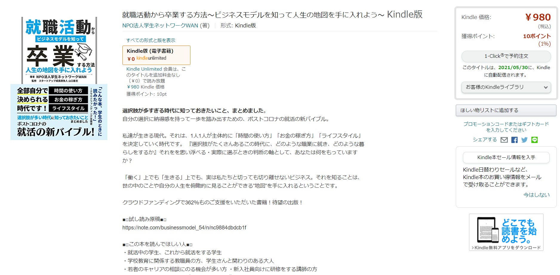 NPO法人学生ネットワークWANは、書籍「就職活動から卒業する方法〜ビジネスモデルを知って人生の地図を手に入れよう〜」の出版記念イベントを2021年6月20日(日)、福岡市の天神にある「GarrawayF」にて行いました。※当イベントは新型コロナ感染症対策をした上で開催しました◉九州パンケーキ1袋の後ろに広がる世界当イベントは、2021年3月16日(火)~2021年4月28日(水)の期間に実施した、出版に向けたクラウドファンディングのリターンで、著者であるNPO法人学生ネットワークWANとのコラボイベントとして、⼀平ホールディングス代表取締役社⻑(九州パンケーキ)の村岡浩司氏をスペシャルゲストにお招きし、開催しました。会場としてお借りしたのは、福岡天神の”Co-Creative Connected Lounge”GarrawayF(運営:トヨタ九州自動車)。「ものづくりで九州と世界をつなぐ、九州創生」をコンセプトに掲げ、多様なバックグラウンドを持った人達と創造をカタチに出来る「現場」としてつくられた、コワーキングスペース・イベントスペースです。今回出版した書籍「就職活動から卒業する方法〜ビジネスモデルを知って人生の地図を手に入れよう〜」は、「個々人がキャリア形成していく上で知っておきたい社会の仕組み」としてビジネスモデルを取り扱う書籍で、"ビジネスモデル"にちなんだトークセッションと、村岡氏が焼き上げた九州パンケーキを食べながらの懇親会を行いました。九州アイランドのオンラインショップはこちらhttps://www.kyushu-island.jp/shop/products/list?category_id=2 トークセッションでは、今年のはじめに私立中学校の受験問題にもなった、「九州パンケーキの流通モデル」のお話を中心に、“世界があこがれる九州をつくる”を経営理念として様々なプロダクトを生み出し続ける、村岡氏の"取り組み"についてお話いただきました。◉自分のために知っておきたい知識「ビジネスモデル」をやさしく解説する書籍書籍「就職活動から卒業する方法〜ビジネスモデルを知って人生の地図を手に入れよう〜」は、「個々人がキャリア形成していく上で知っておきたい社会の仕組み」としてビジネスモデルを取り扱う書籍です。コロナ禍で急速に浸透したテレワークにより働き方に大きな変化が生まれています。 これからは個人が働く場所や時間、 そして仕事を自分の意思で選択する時代です。本書籍は、 そんな時代を自分らしく生きるために、 「限られた人にだけ必要な知識」ではなく、 就職して働くすべての人に馴染みをもってほしい知識として、 ビジネスモデルをやさしく解説し、 「社会の中で自分の立ち位置をどう作るか」を考える力を1人1人が養うきっかけをつくる1冊として制作しました。 「学校を出たあとでどう働くか」に悩む学生に、 自身もキャリアに悩みながらビジネスに関する知識を深めていった学生が、 「昔の自分に知ってほしい話」として身近な話を織り交ぜながらビジネスの知識を紹介します。著者:NPO法人学生ネットワークWAN監修:スタートアップ成長請負人 山口豪志氏販売元:ビジップ株式会社電子書籍版(Kindle)のご購入はこちらから: https://amzn.to/2T5pC3K 紙版(Amazon POD)のご購入はこちらから: https://amzn.to/3jaQ2Mj ◉村岡浩司氏について株式会社 ⼀平ホールディングス代表取締役社⻑“世界があこがれる九州をつくる”を経営理念として、九州産の農業素材だけを集めて作られた九州パンケーキミックスをはじめとする、「KYUSHU ISLAND®/九州アイランド」プロダクトシリーズを全国に展開。アジア圏への進出を進めている「九州パンケーキカフェ」は、⾷による⽇本の地⽅創⽣モデルとして話題を呼び、台湾(台北)では予約の取れないカフェとしてブームを巻き起こしている。地元宮崎を中⼼として多数の飲⾷店を経営する⼀⽅、九州各地にて様々な地元創⽣活動や⾷を通じたコミュニティ活動にも取り組んでいる。メディア出演:カンブリア宮殿、NHK ワールド、⽇経プラス 10、⽇経ビジネス、東洋経済 他多数。ローカルイノベーター55 選、⽇本を元気にする 88 ⼈(フォーブス JAPAN)に選出。「第1回 九州未来アワード」⼤賞受賞。ICC サミット 2019「クラフテッドカタパルト」優勝。著書に「九州バカ 世界とつながる地元創⽣起業論(発⾏=⽂屋 発売=サンクチュアリ出版)」。株式会社⼀平ホールディングス 公式ウェブサイトhttps://ippei-holdings.com/ 村岡氏が手がける"九州アイランド"のクラウドファンディングは現在Makuakeで実施中ですhttps://www.makuake.com/partner/kyushuisland 村岡氏の著書「九州バカ」https://amzn.to/362vUEJ ◉山口 豪志氏について株式会社54 代表取締役社長1984年1月5日生。 岡山県岡山市出身。 2006年からクックパッド株式会社にて、 広告事業・マーケティング事業の創成期より参加、 2009年の同社IPOにトップセールスにて貢献。 12年より3人目の社員としてランサーズ株式会社に参画し、 ビジネス開発部部長、 社長室広報チームリーダーを歴任。 15年5月に株式会社54を創業。 2017年7月、 プロトスター株式会社に代表取締役COO