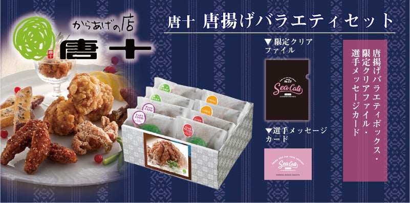 [内容]ピリ辛チキンバー80g×2・唐十からあげ4個×2・いもから120g×2・あっさりとりかわ55g×2/限定クリアファイル/選手からのメッセージカード