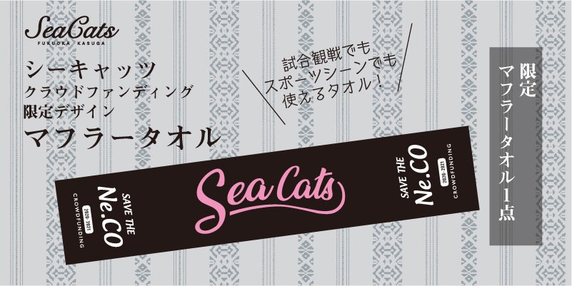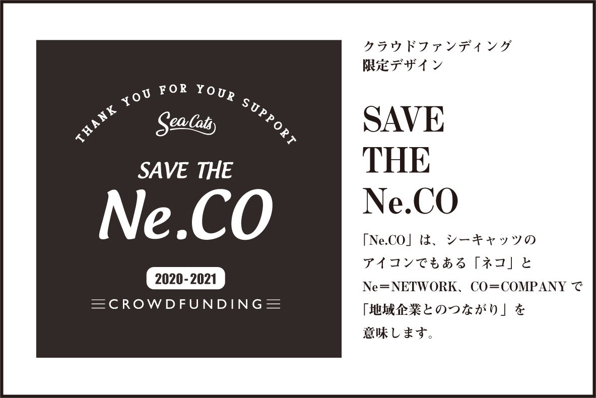 今回はプロジェクト限定デザイングッズを企画させていただきました。「SAVE THE Ne.CO」をコンセプトに、シーキャッツ(Ne.CO=ネコ)の支援を通じて、企業をはじめ地域全体のきずなの和(Ne=NETWORK、CO=COMPANY)がもっともっと広がってほしい、そんな思いをデザインに込めました。ぜひご支援をよろしくお願いいたします。