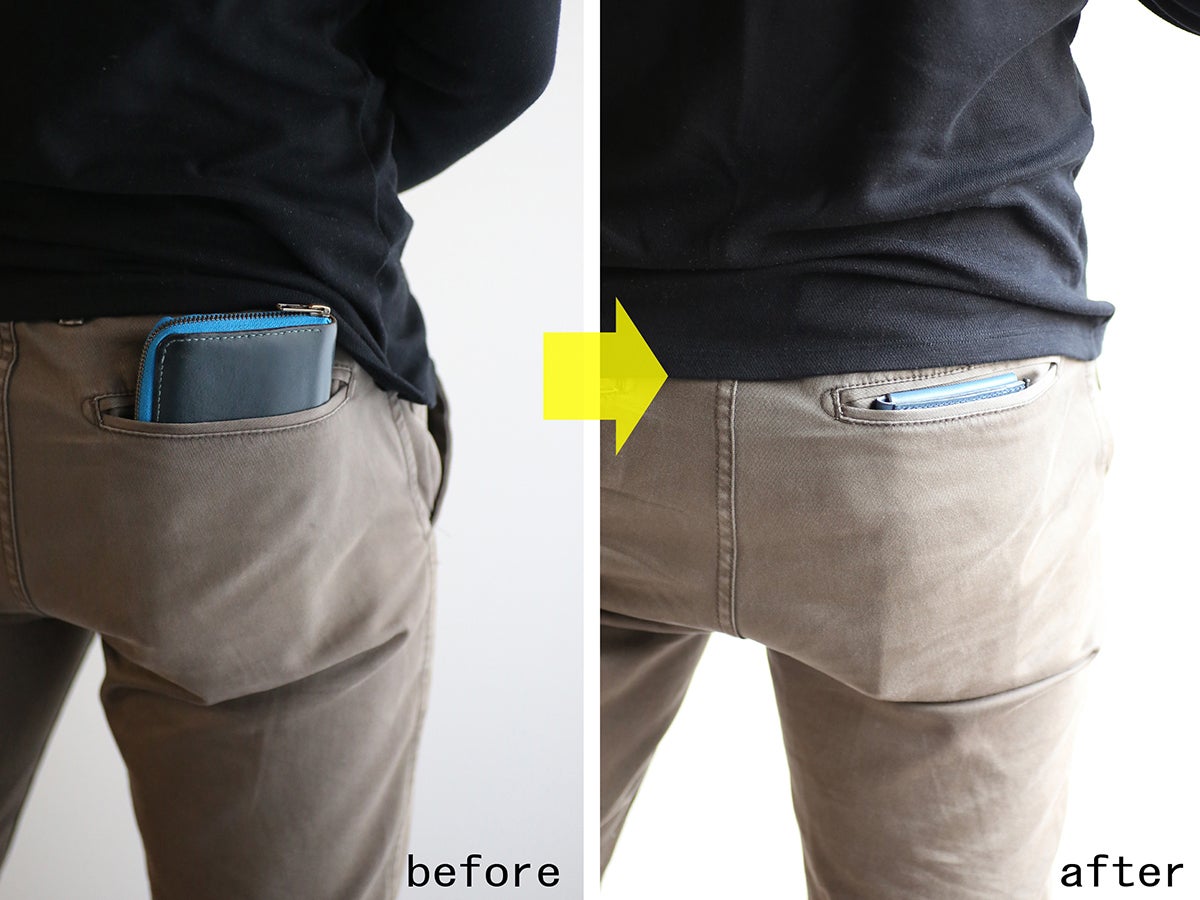 一般的な折り畳み式の長財布であれば、財布を開いてから札入れへアクセスする。ファスナー式の長財布であれば、さらに最初にファスナーをあけるというアクションが追加されます。